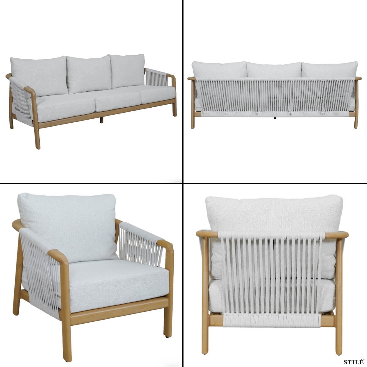 Dona al tuo spazio outdoor un’eleganza senza tempo con questo raffinato salotto da giardino in alluminio effetto legno con intreccio in corda Olifen, pensato per offrire resistenza, comfort e uno stile contemporaneo. Ideale per giardini, terrazze e verande, questo set rappresenta la perfetta combinazione tra estetica naturale e materiali innovativi.