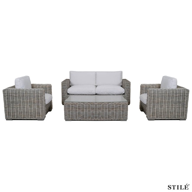 La struttura in legno massello rivestito in rattan Kabù intrecciato offre solidità e durata nel tempo, mentre l’intreccio naturale crea un’estetica calda e accogliente, perfetta per ambienti outdoor di pregio. Il tavolino con piano in vetro aggiunge un tocco moderno ed elegante, oltre a garantire praticità e facilità di pulizia.