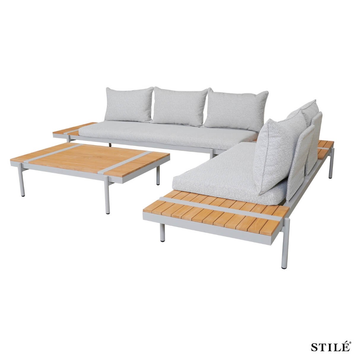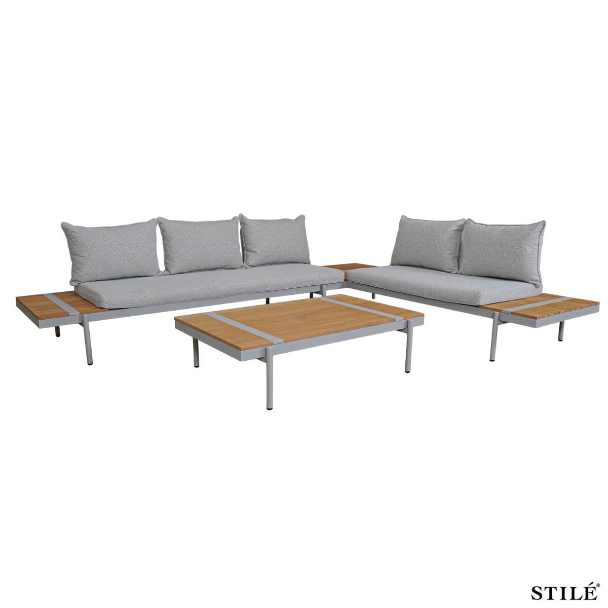 Divano da Giardino Angolare in Alluminio e Teak - Dublin