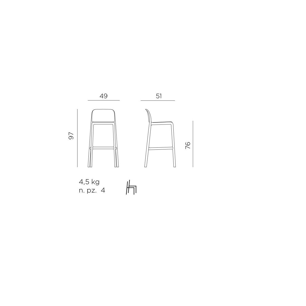 Sgabello monoscocca in resina fiberglass dalle linee pulite ed essenziali. Struttura tubolare senza interruzioni e misure generose per permettere una agile e comoda seduta. Faro è leggero, impilabile e non richiede particolari manutenzioni. Sgabello monoblocco. Polipropilene fiberglass trattato anti-UV e colorato in massa. Finitura opaca. Dotato di piedini antiscivolo. Altezza seduta 76 cm. Resina riciclabile.