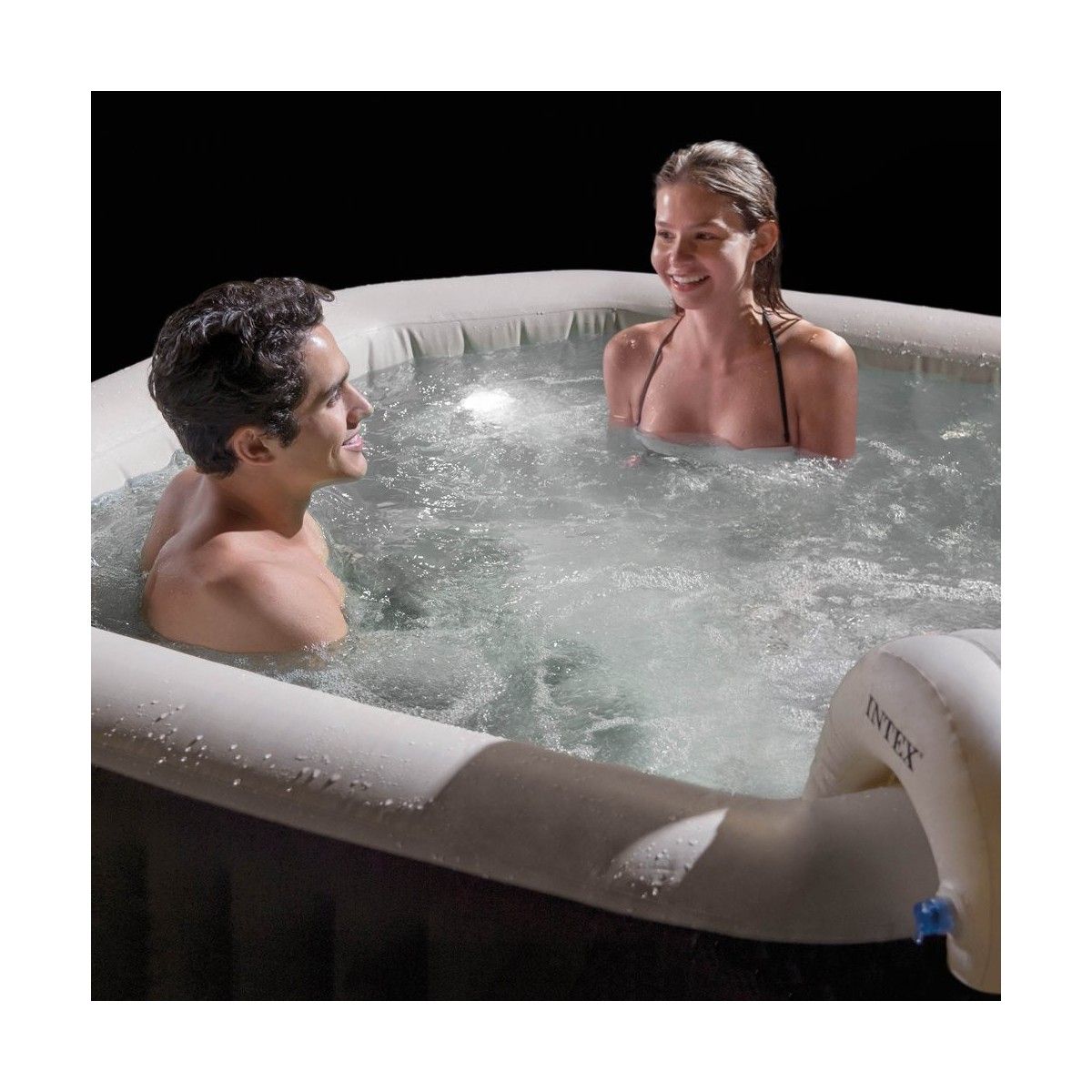 La luce a led di Intex è alimentata dall'energia idroelettrica generata dal movimento dell'acqua nella spa. Questo significa che non hai bisogno di alcuna fonte energetica esterna, rendendola ecologica e senza bisogno di preoccuparti di batterie o collegamenti elettrici complicati. Basta collegare il generatore idroelettrico incluso e godere dell'illuminazione senza pensieri.