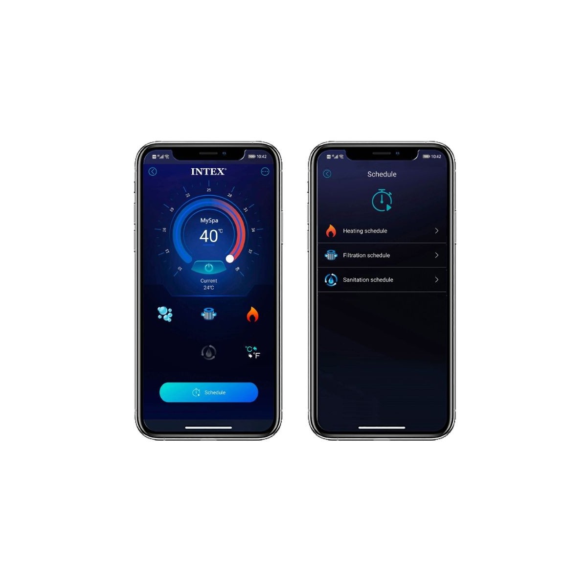 Gestisci tutte le funzionalità della tua spa tramite un comodo pannello di controllo touch rimovibile e senza fili. Con l'applicazione dedicata di INTEX, puoi programmare e controllare la tua spa direttamente dallo smartphone.