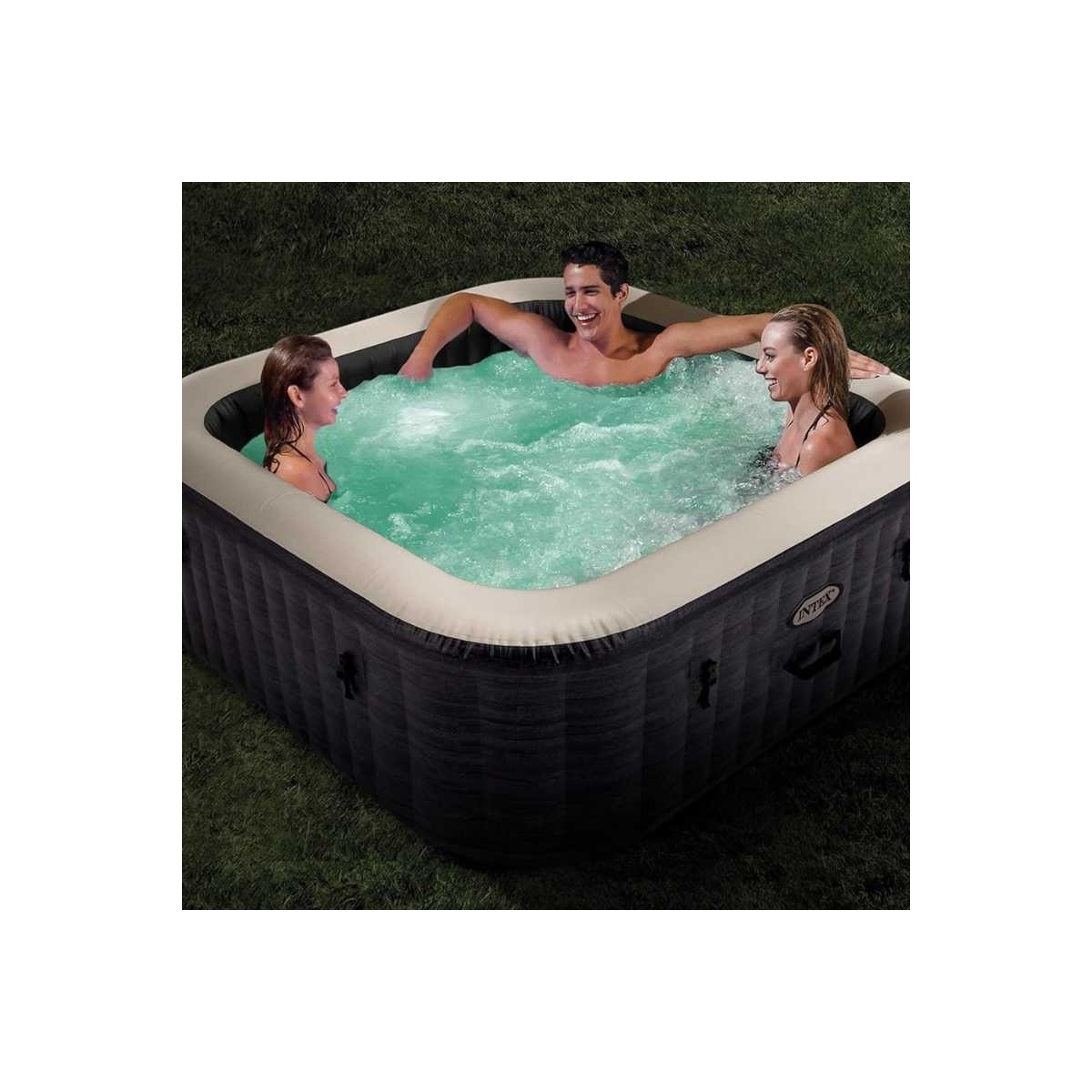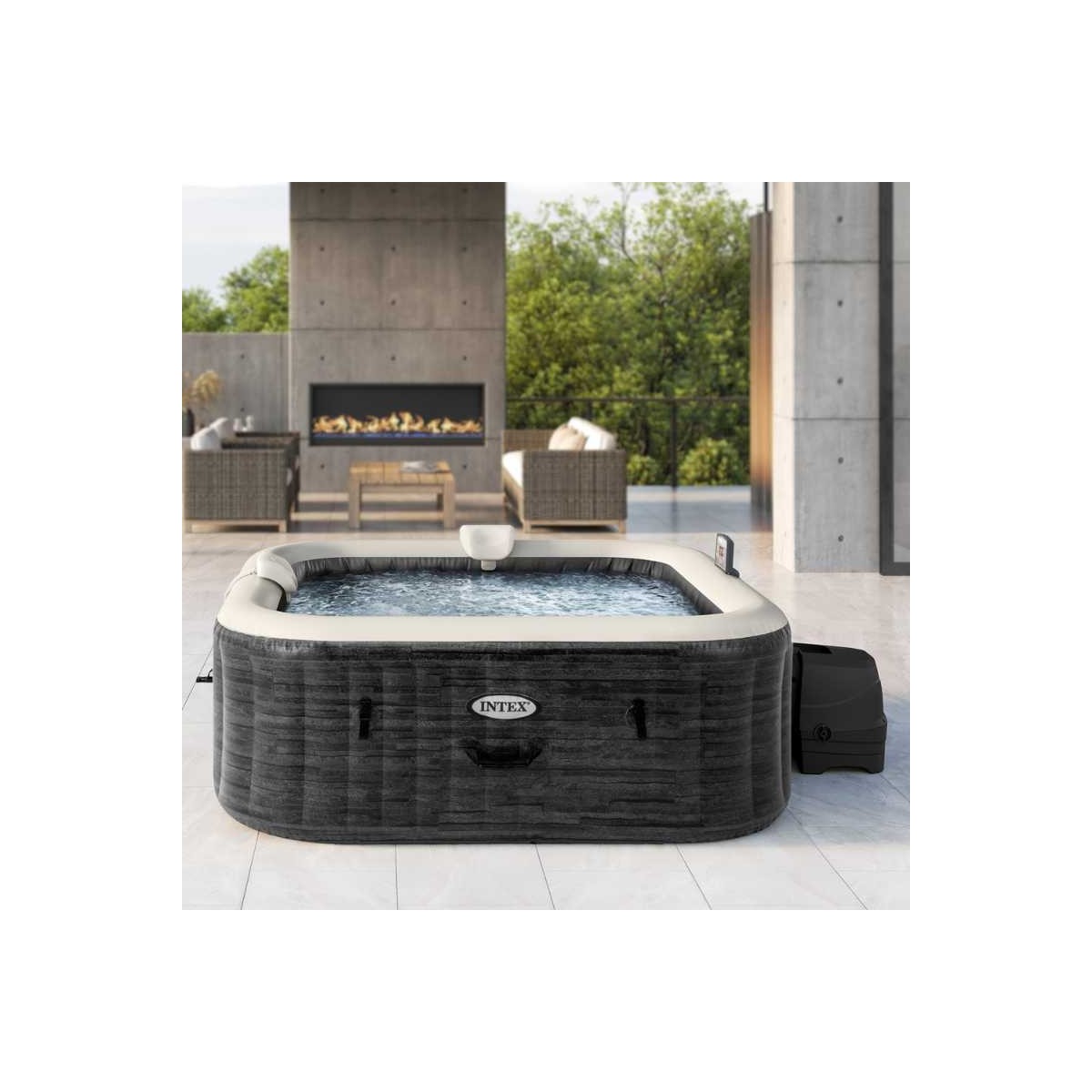 Aggiungi un tocco moderno e di classe al tuo giardino con l’esclusiva Spa Idromassaggio Greystone Deluxe. Il suo rivestimento in grigio pietra conferisce un carattere unico, perfetto per gli ambienti dal design semplice, lineare e classico. Dotata di doppio sistema anticalcare e clorinatore, questa spa idromassaggio gonfiabile offre la migliore qualità dell’acqua per un’esperienza di relax senza paragoni. La forma quadrata della Spa Intex garantisce solidità e resistenza, mentre il montaggio rapido permette di godere del massimo comfort nel minor tempo possibile.