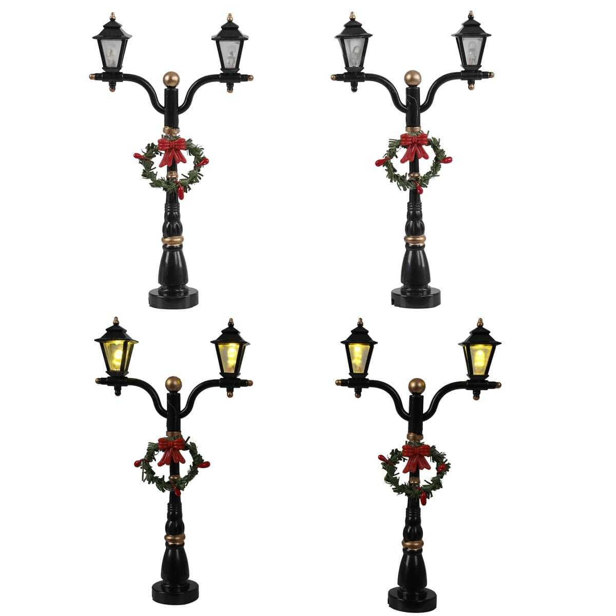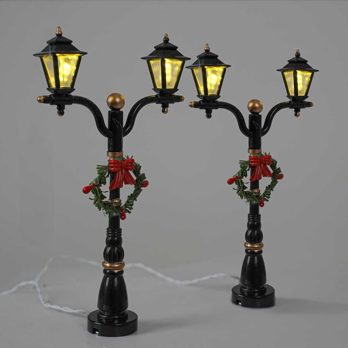 Lanterne Natalizie Eleganti per Villaggi in Miniatura con Illuminazione LED Bianco Caldo, Set da 2 - Stilè Collection
