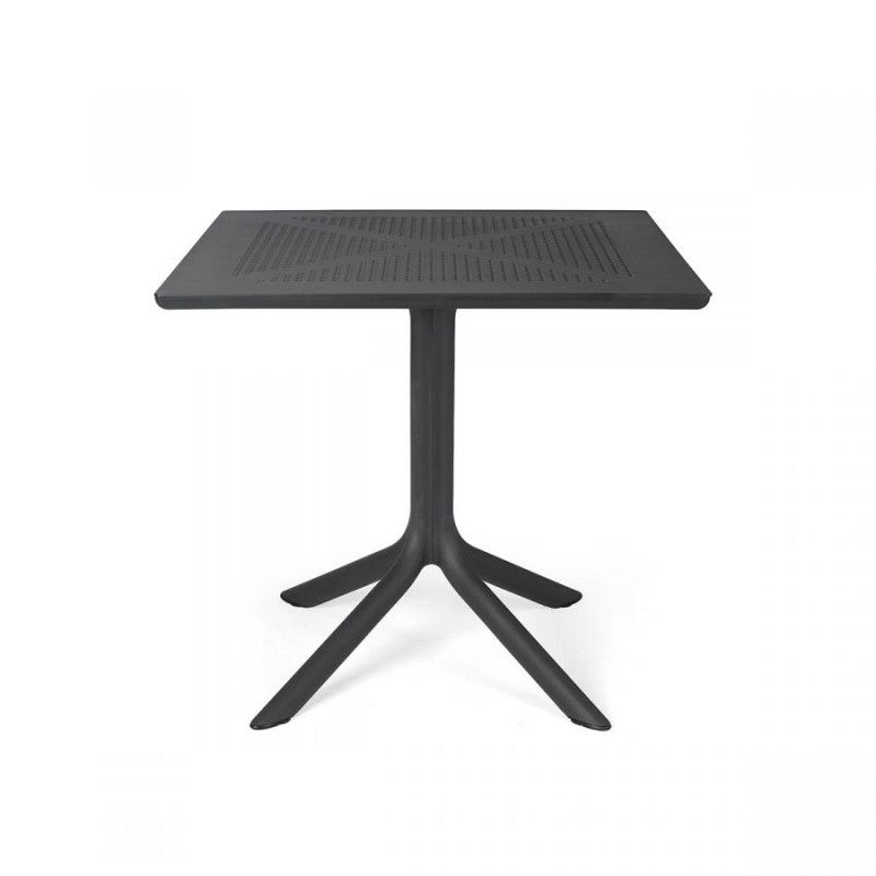 Appositamente studiato per occupare poco spazio, Clip è un tavolo professionale quadrato in resina fiberglass con gamba centrale a quattro razze e piano in DurelTop foto-inciso con un motivo bucherellato. Tavolo con gamba centrale a 4 razze. Piano DurelTOP in polipropilene fiberglass trattato anti-UV, colorato in massa. Finitura opaca. Dotato di piedini regolabili. Resina riciclabile.