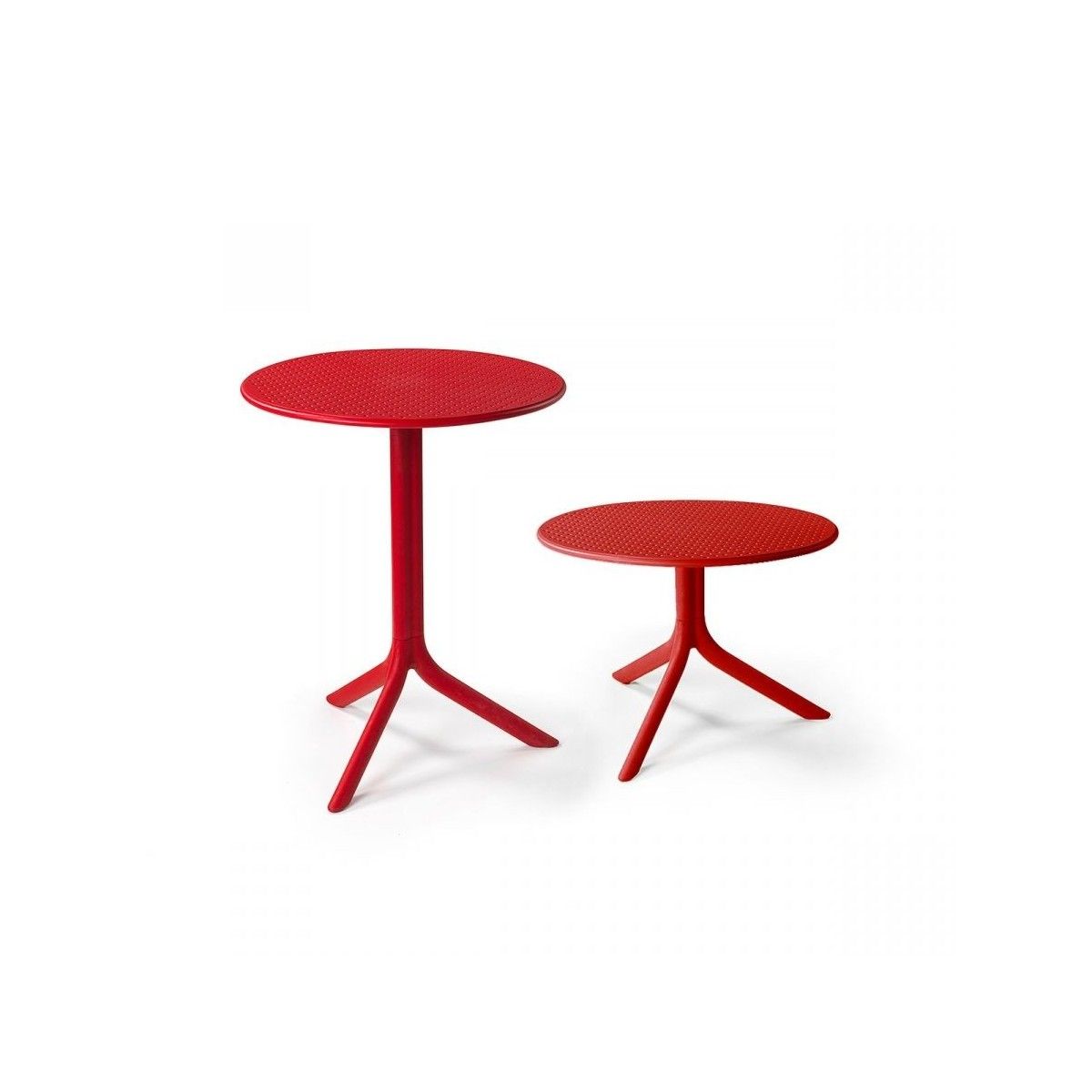 Tavolino d’appoggio in resina fiberglass con piano scatolato tondo caratterizzato da piccoli forellini decorativi e funzionali a renderlo altamente drenante. Base a tre gambe, facile da montare e smontare e proposto con un kit che permette di ottenere due altezze. Tavolo con gamba centrale a 3 razze. Polipropilene fiberglass trattato anti-UV e colorato in massa. Smontabile. Finitura opaca. Dotato di piedini antiscivolo. Possibilità di doppia altezza: 40 cm / 76,5 cm. Resina riciclabile.