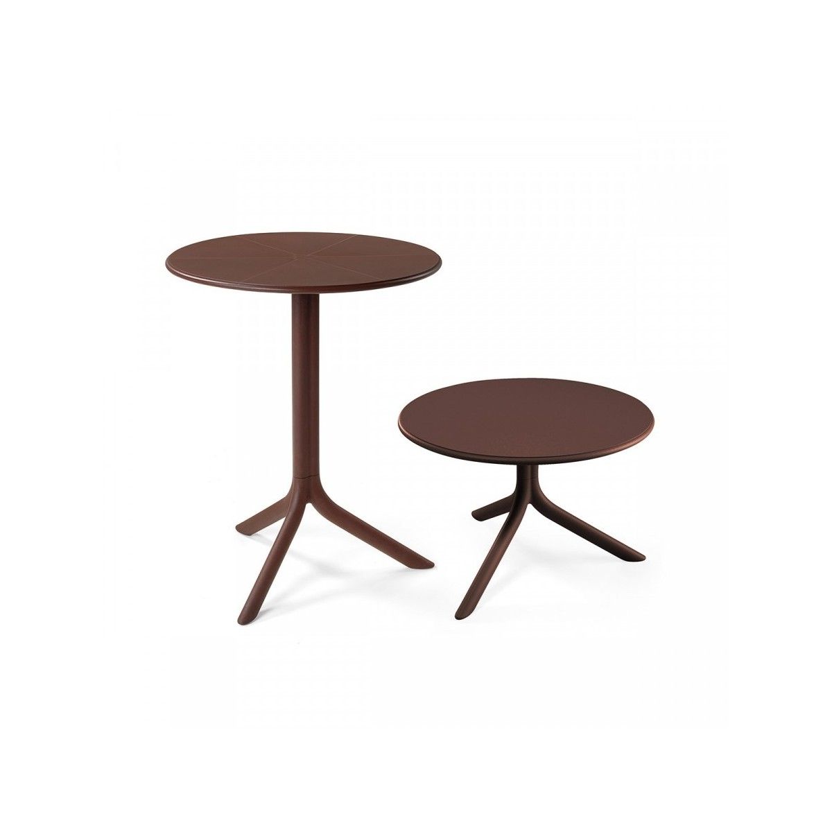Tavolino d’appoggio in resina fiberglass con piano rotondo e base a tre gambe adatto all’esterno ma perfetto anche come complemento d’arredo indoor. Facile da montare e smontare, è proposto con un kit che permette di ottenere due altezze. Tavolo con gamba centrale a 3 razze. Polipropilene fiberglass trattato anti-UV e colorato in massa. Smontabile. Finitura opaca. Dotato di piedini antiscivolo. Possibilità di doppia altezza: 40 cm / 76,5 cm. Resina riciclabile.