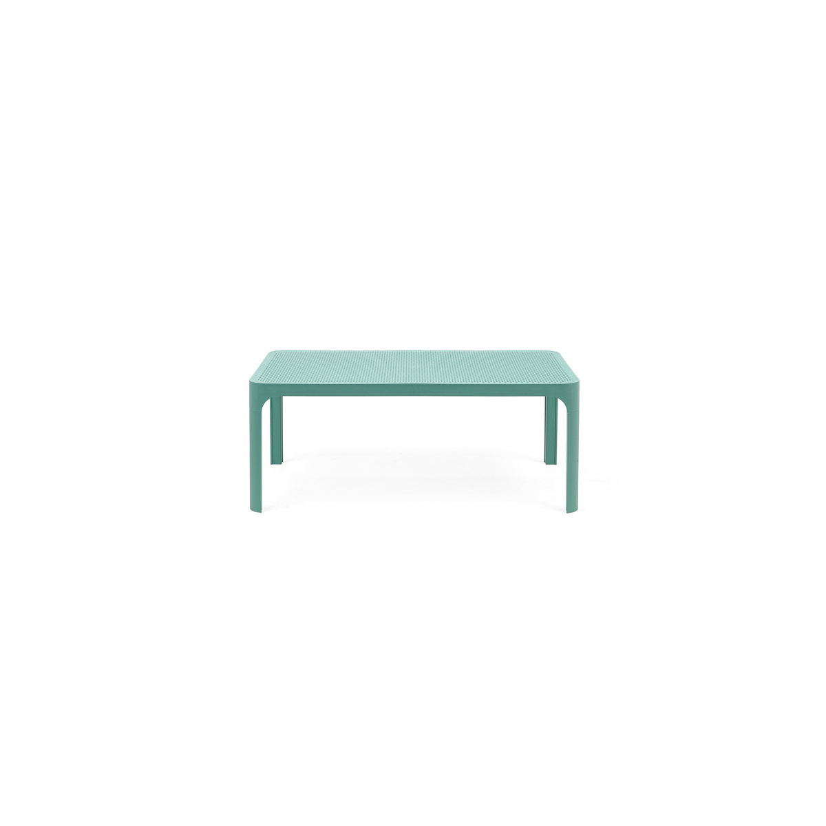 Elegante tavolo da appoggio in resina fiberglass colorata in massa con piano rettangolare caratterizzato da un motivo bucherellato che riprende il leitmotiv di tutta la collezione Net. Tavolo basso. Polipropilene fiberglass trattato anti-UV e colorato in massa. Finitura opaca. Dotato di piedini antiscivolo. Resina riciclabile.