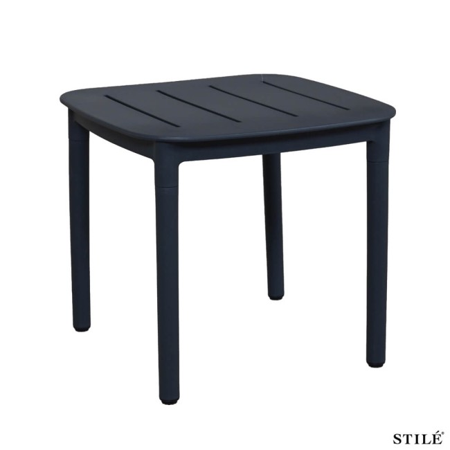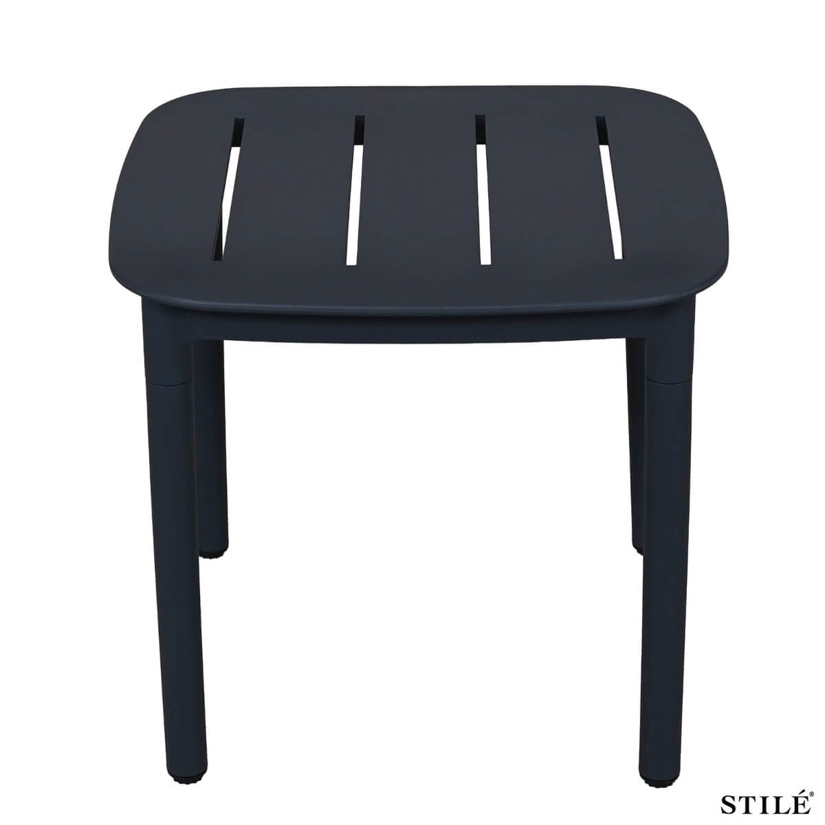 Il piano forato a righe dona un look moderno e funzionale, facilitando il drenaggio dell’acqua e rendendolo perfetto per ogni stagione. Le dimensioni compatte (45 x 45 x H.40,5 cm) lo rendono ideale come tavolino d’appoggio per salotti da esterno, lounge o aree relax.