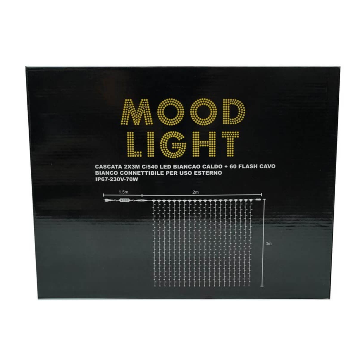 Progettata per un utilizzo interno ed esterno, questa tenda luminosa è dotata di grado di protezione IP67, cavo in gomma bianca ultra resistente e possibilità di prolungamento, rendendola ideale anche per installazioni continuative e ambienti esposti alle intemperie.