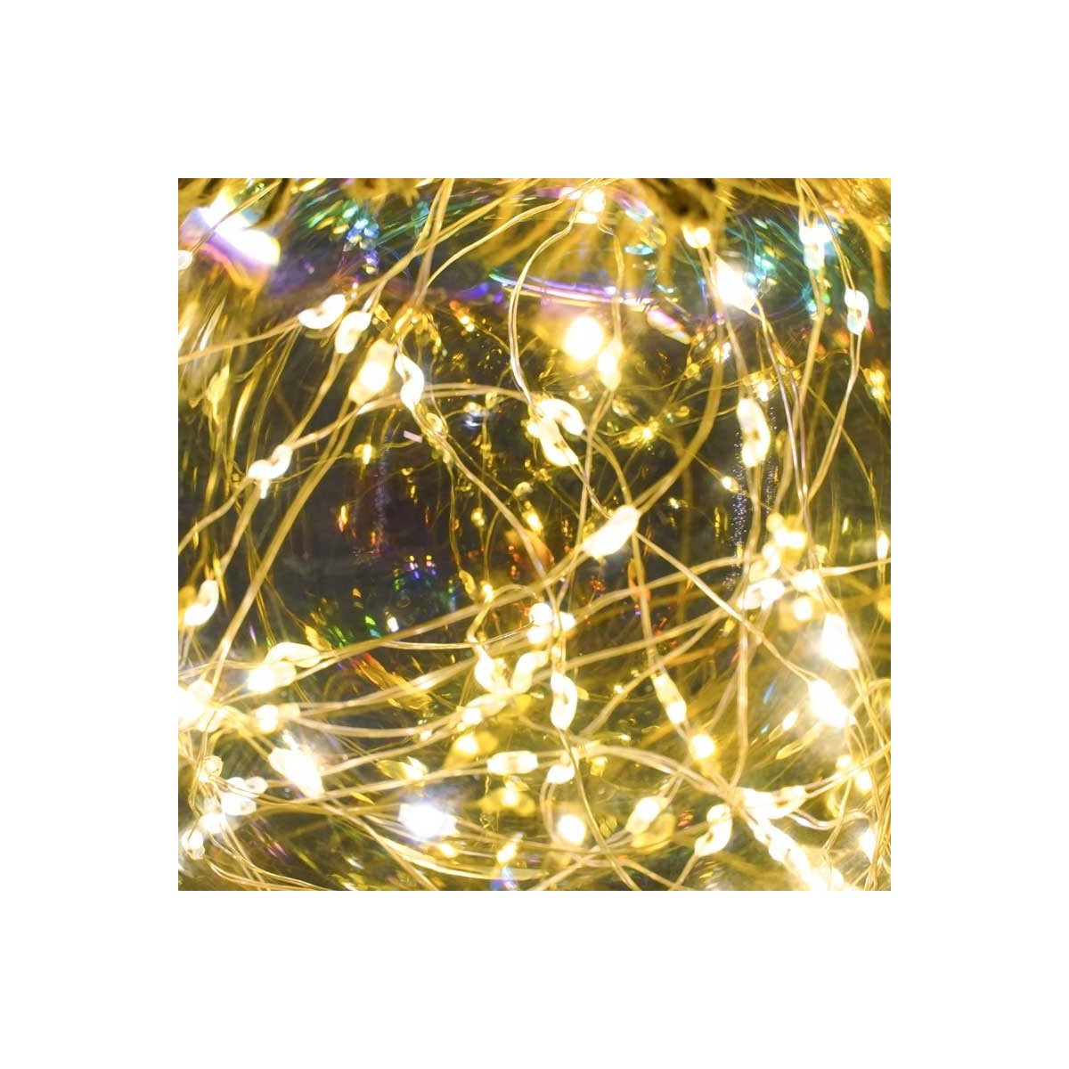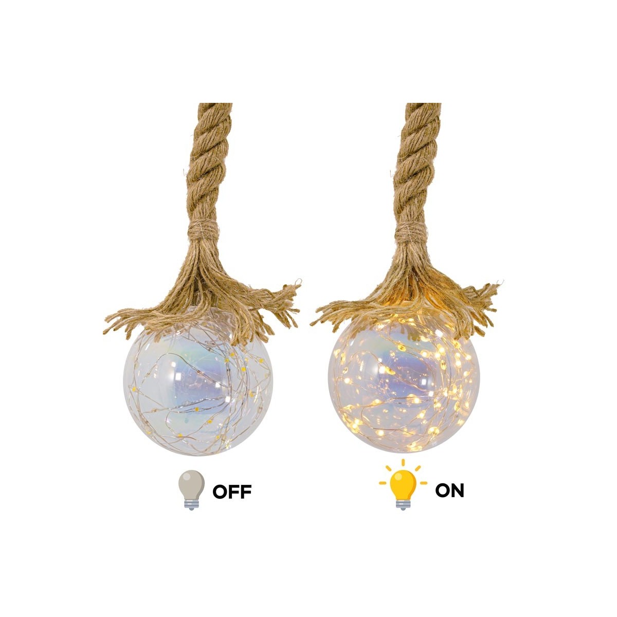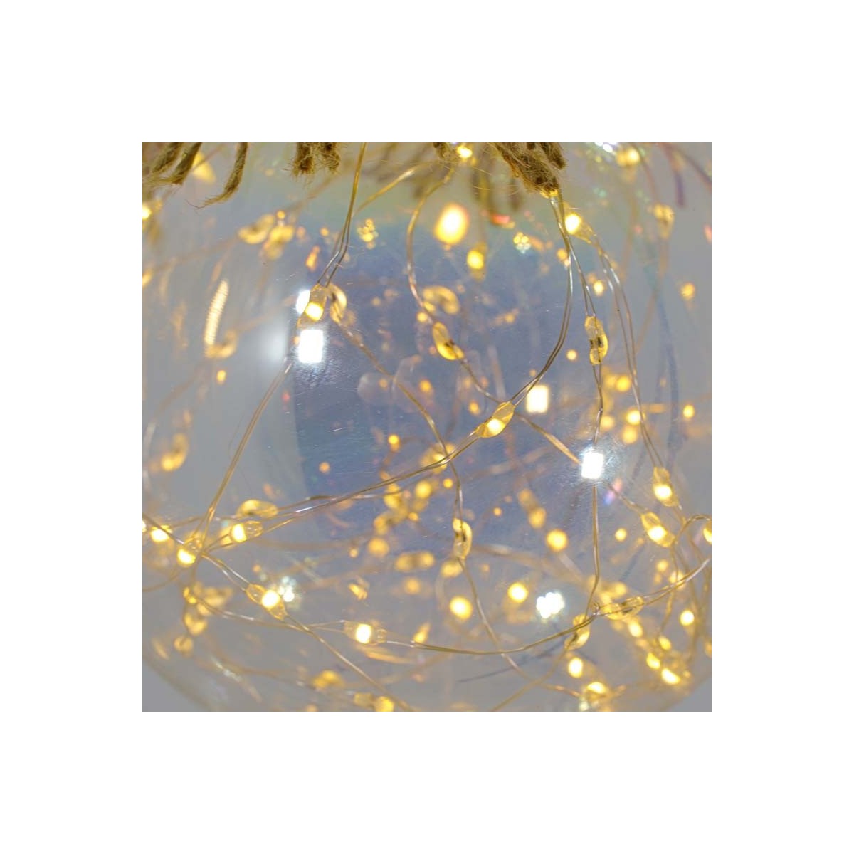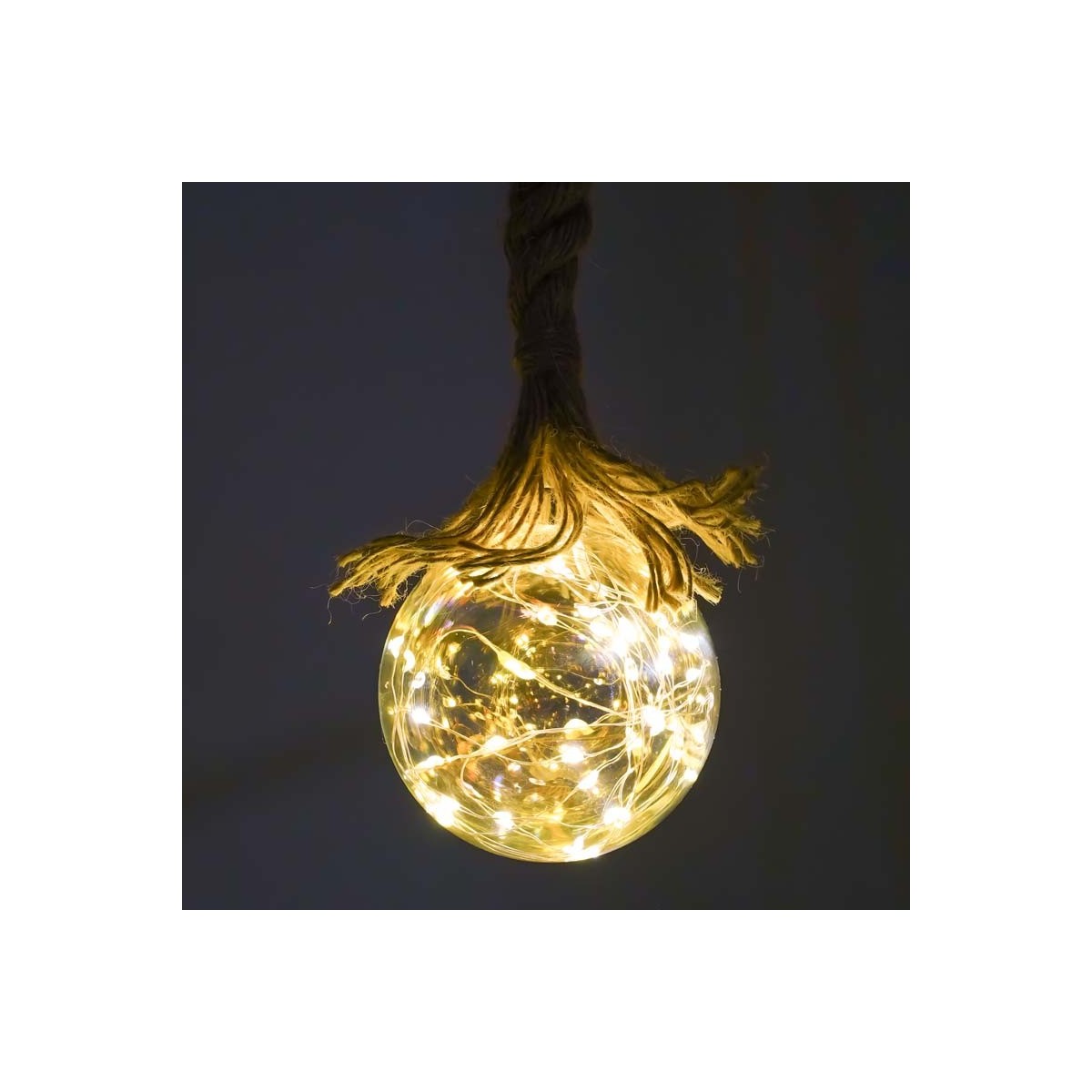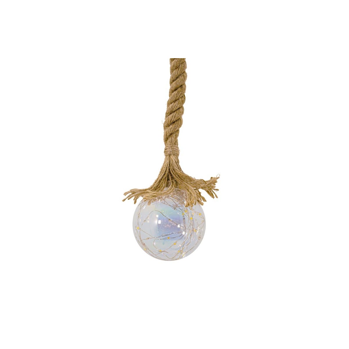 Sfera Luminosa in Vetro, Ø 10 cm, 45 Micro Led con Corda in Canapa