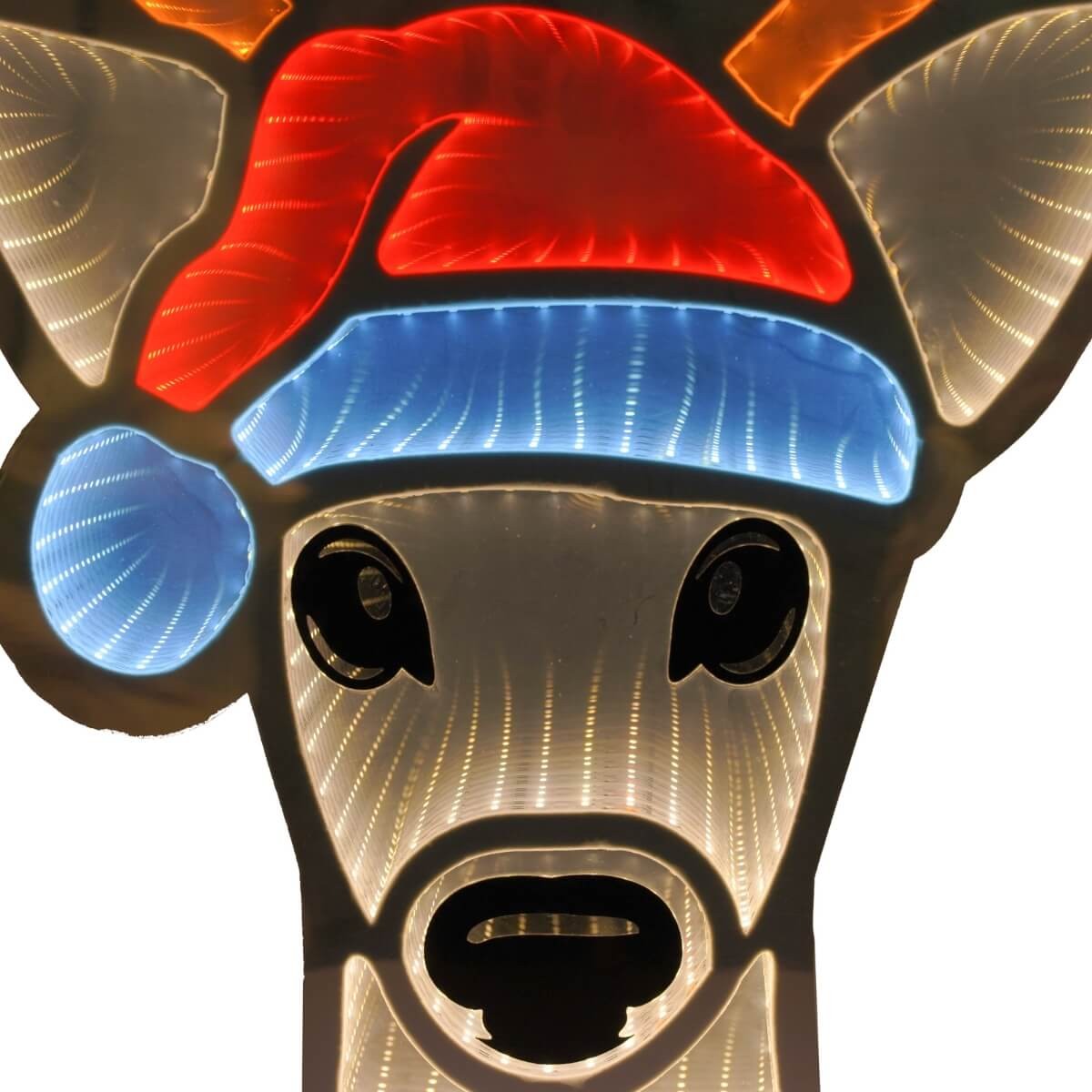 Renna Natalizia Luminosa 3D con Effetto Infinity Mirror – Decorazione Led Multicolore per Interni ed Esterni Coperti