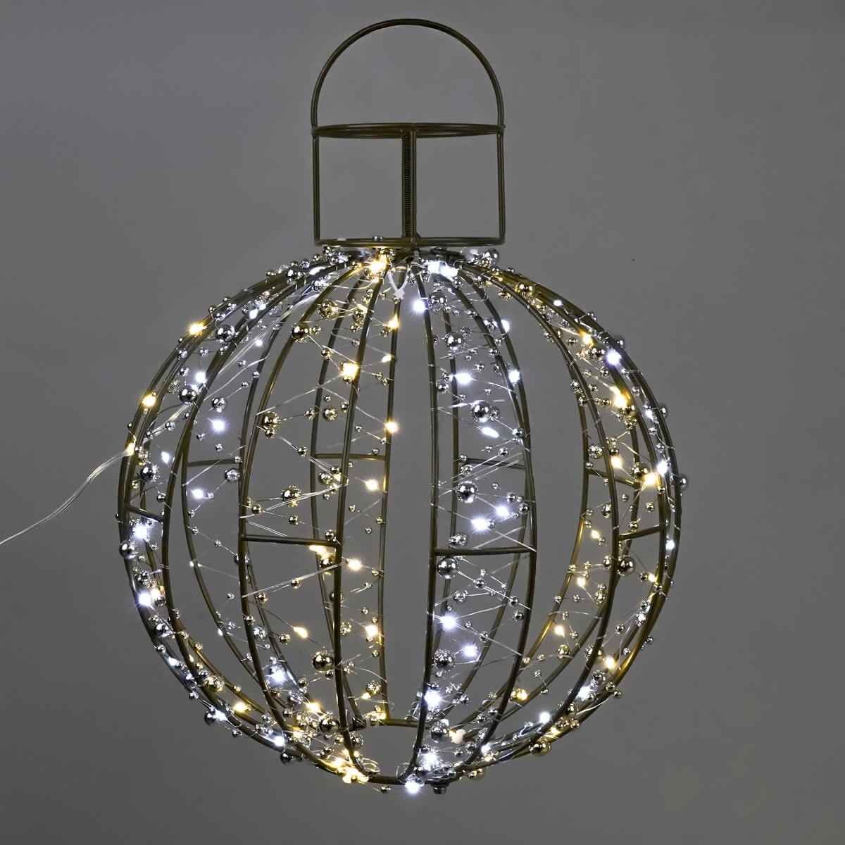 Illumina le tue feste con la sfera luminosa natalizia a LED, un complemento decorativo elegante e versatile perfetto per interni ed esterni. Disponibile in tre dimensioni (30 cm, 41 cm e 51 cm), questa sfera in metallo è arricchita da led bianco caldo e freddo che creano un effetto scenografico e raffinato.