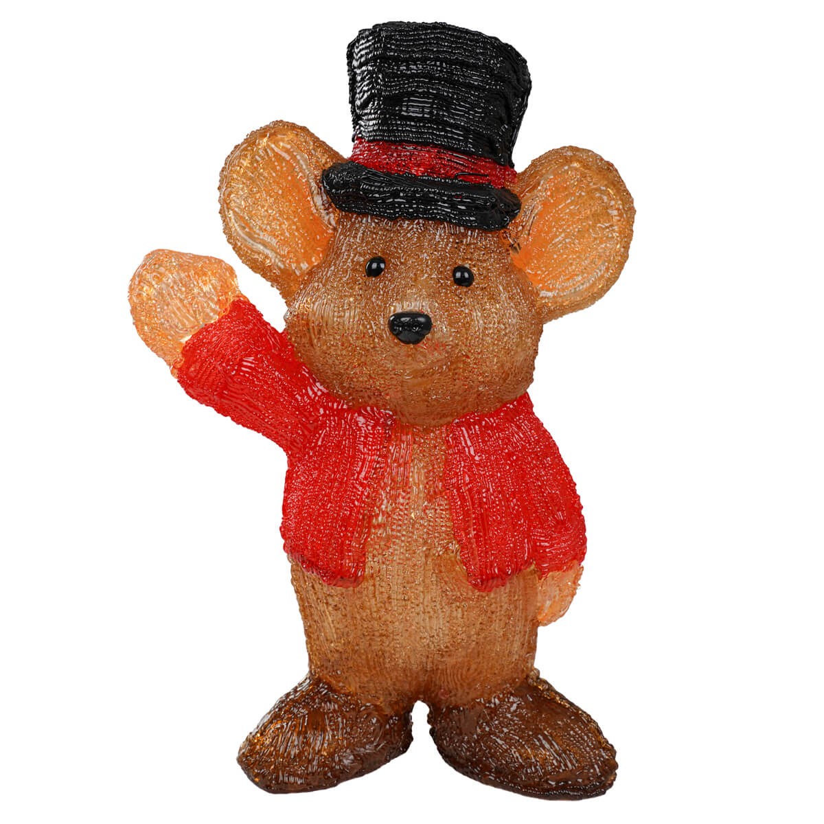 Realizzato in acrilico di alta qualità, questo simpatico topolino indossa un elegante cappello a cilindro e una sciarpa rossa che risaltano grazie ai 30 LED bianchi integrati, capaci di diffondere una luce calda e accogliente. Con le sue dimensioni di 25,5x13xH40 cm, è perfetto per decorare ingressi, salotti, vetrine o giardini coperti, creando un’atmosfera natalizia allegra e luminosa.