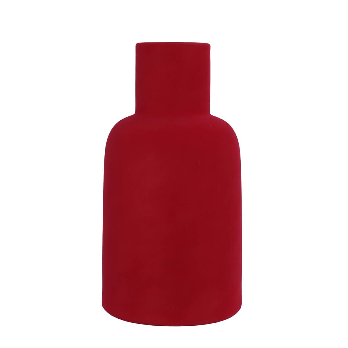 Vaso in Ceramica Rivestito in Velluto 15x15xH26.5 cm – Design Elegante per Decorazioni di Stile | Colori Rosso e Nero