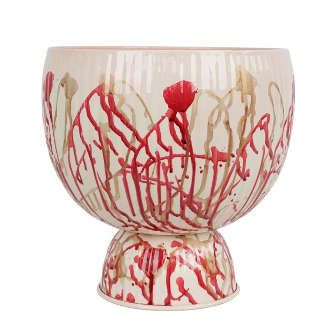 Dona un tocco di eleganza artistica ai tuoi ambienti con il vaso in metallo decorativo, un complemento d’arredo raffinato e contemporaneo che unisce linee morbide e colori sofisticati. La superficie lucida color avorio è impreziosita da sfumature artistiche nei toni del rosa e del beige, creando un effetto visivo unico e ricercato, perfetto per chi desidera valorizzare con stile la propria casa.