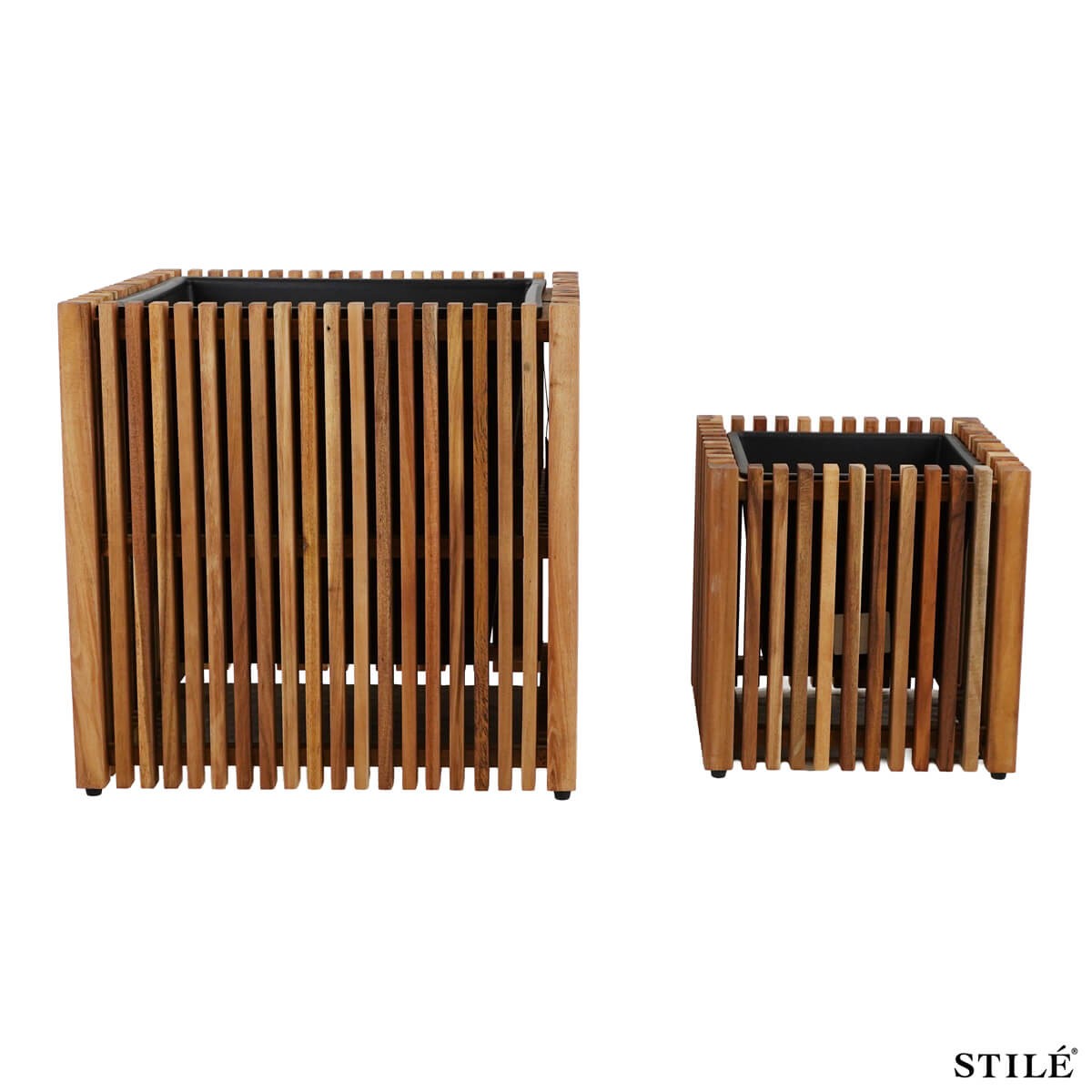 Set 2 Vasi in Legno di Acacia con Vaso Interno – Design Naturale per Interni ed Esterni
