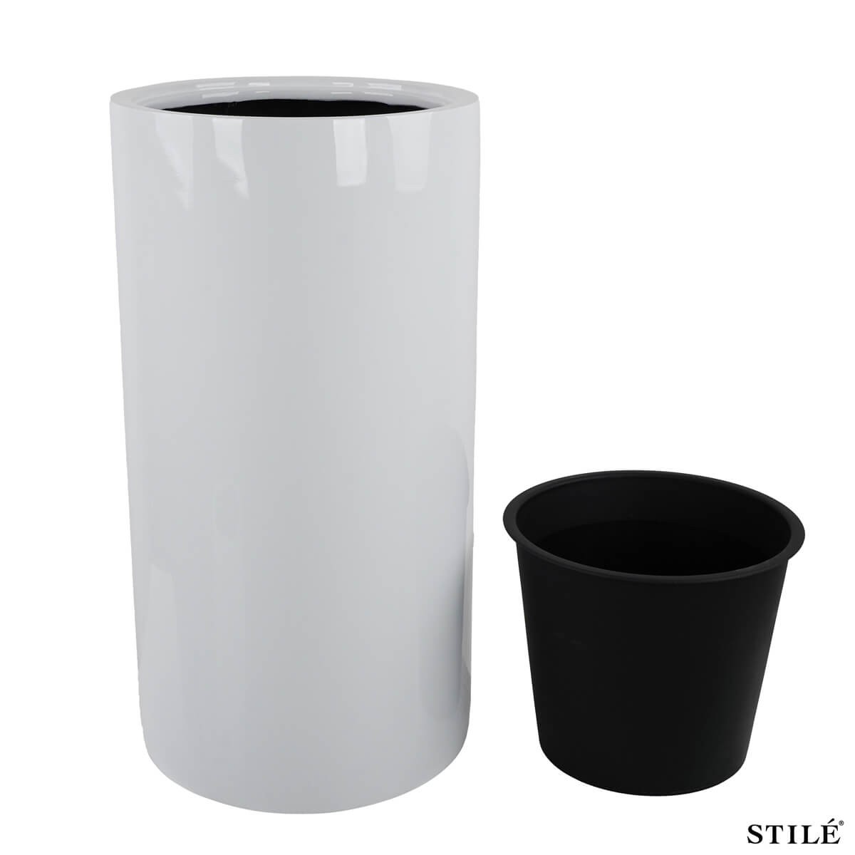 Set 2 Vasi Bianchi Laccati Lucidi in Fiberstone – Design Moderno con Inserto Interno
