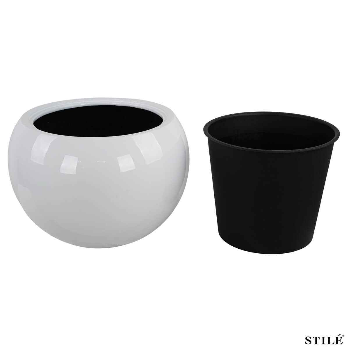 Dona eleganza e armonia ai tuoi spazi con questo raffinato set di 2 vasi a sfera bianchi laccati lucidi, perfetti per valorizzare piante verdi, fiori e composizioni decorative. Il design tondeggiante e contemporaneo si abbina con naturalezza ad ambienti moderni, minimal e di design, rendendoli ideali sia per interni che per esterni coperti.