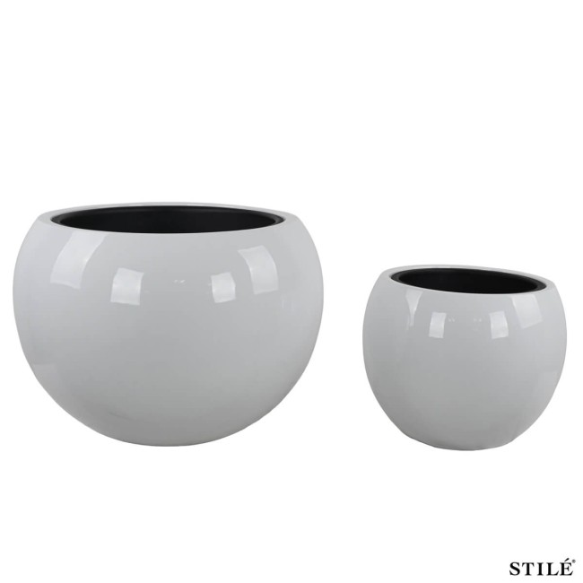 Set 2 Vasi a Sfera Bianchi Laccati Lucidi in Fiberstone – Design Moderno per Interni ed Esterni