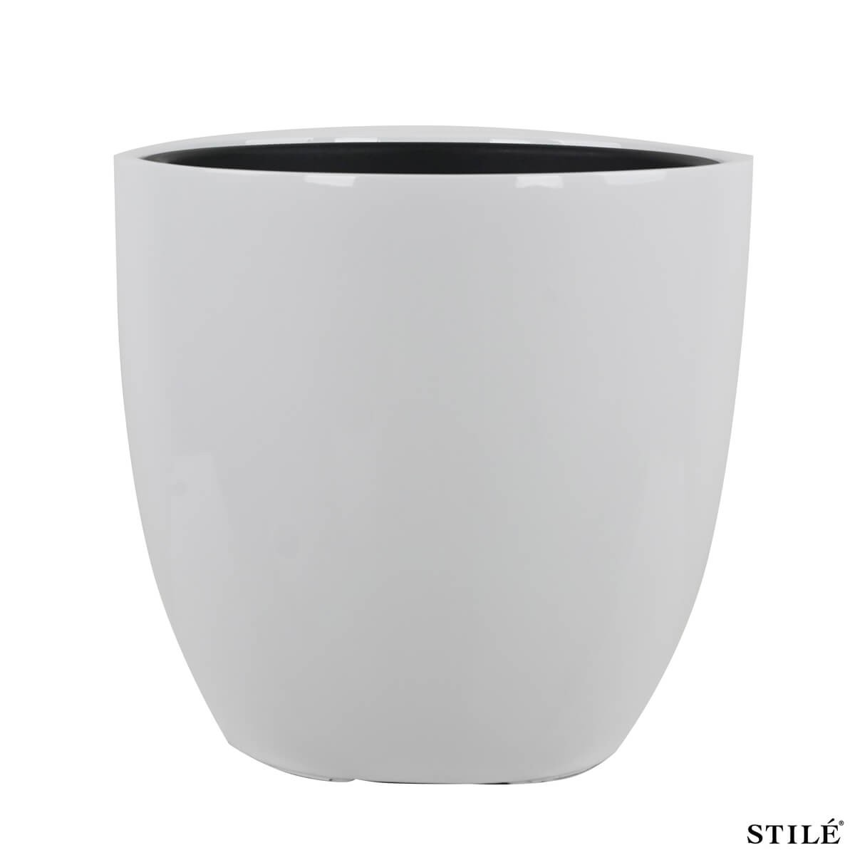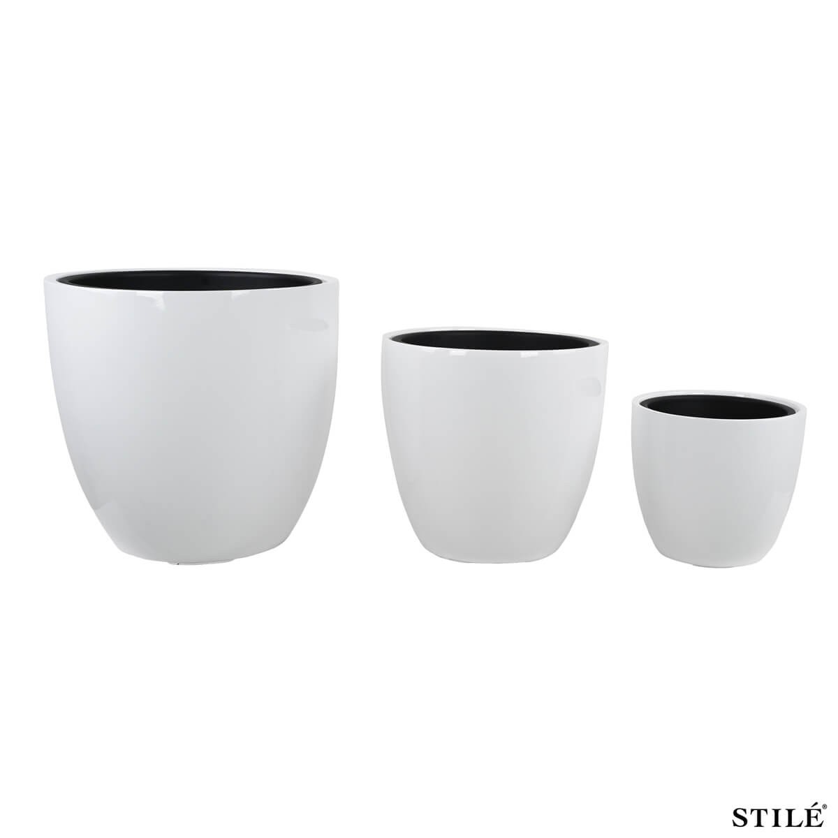 Set 3 Vasi Bianchi Laccati Lucidi in Fiberstone – Design Moderno per Interni ed Esterni