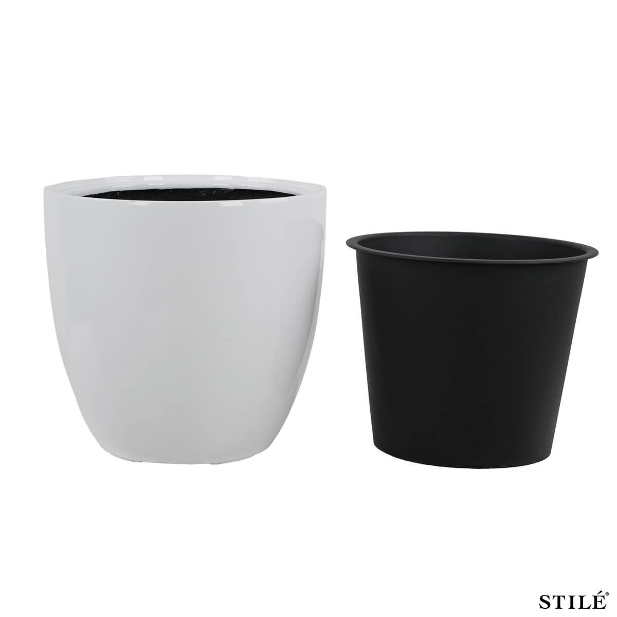 Ogni vaso è dotato di vaso interno nero in plastica, pratico e funzionale, che facilita il rinvaso e garantisce una corretta gestione dell’acqua e delle radici. Le tre diverse dimensioni permettono di creare composizioni armoniose e dinamiche, ideali per piante ornamentali, verdi o fiorite.