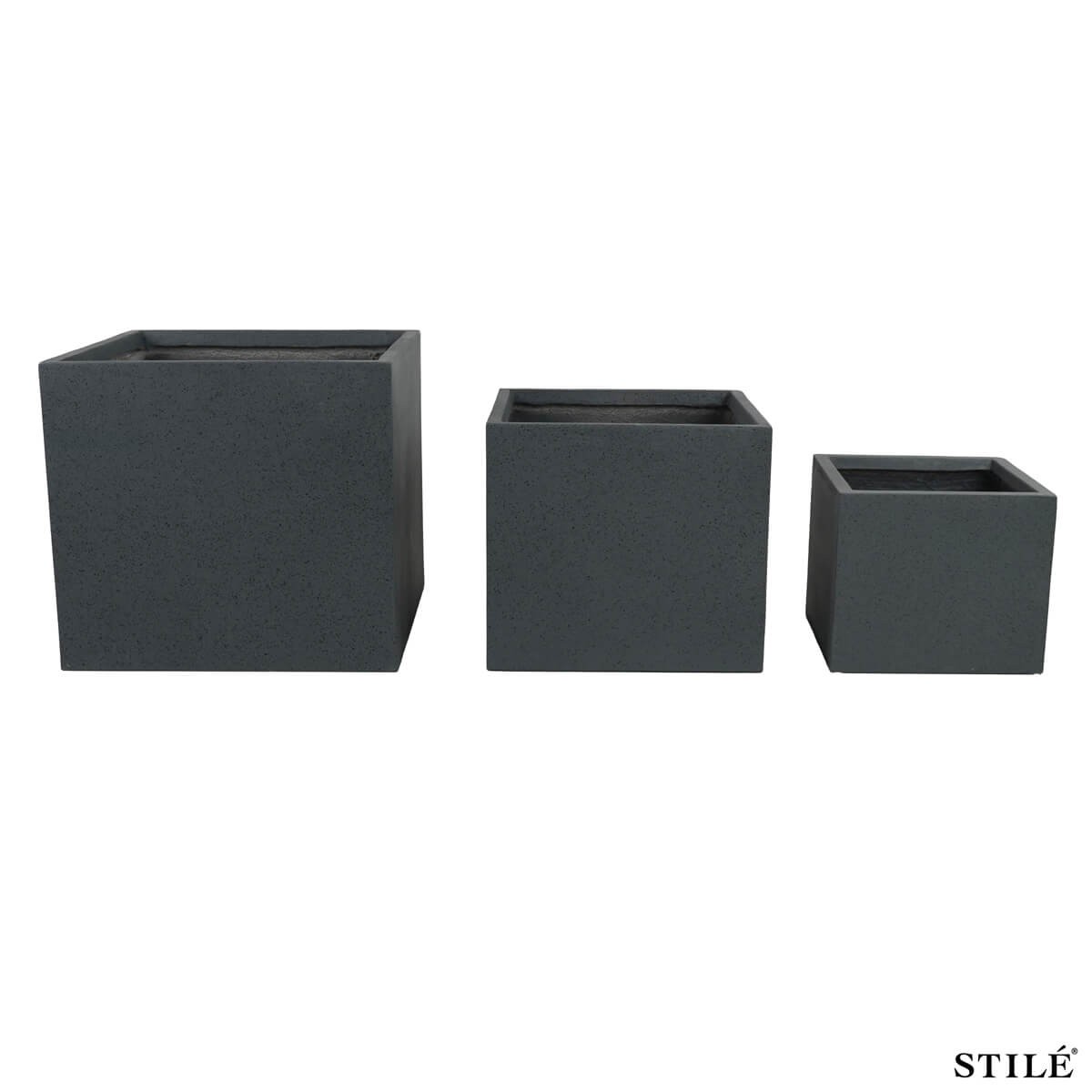 - Set composto da 3 vasi quadrati grigi
