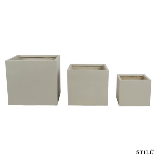 Set 3 Vasi Quadrati Taupe in Ossido di Magnesio