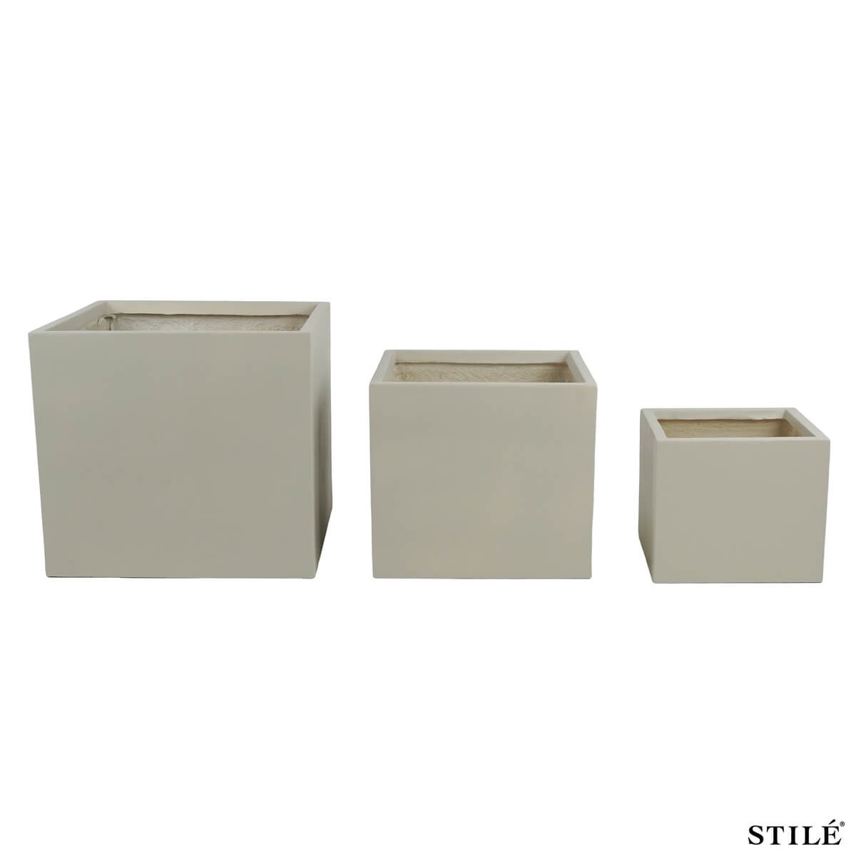 Set 3 Vasi Quadrati Taupe in Ossido di Magnesio – Design Moderno per Interni ed Esterni
