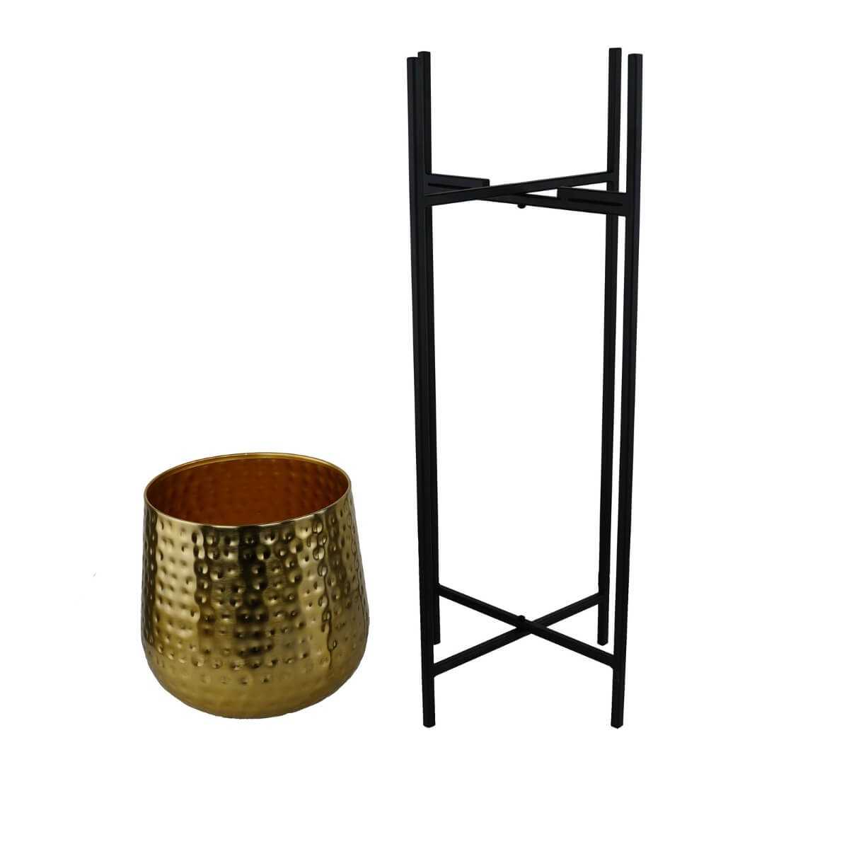 Vaso Dorato su Piedistallo Nero in Alluminio 2 Misure