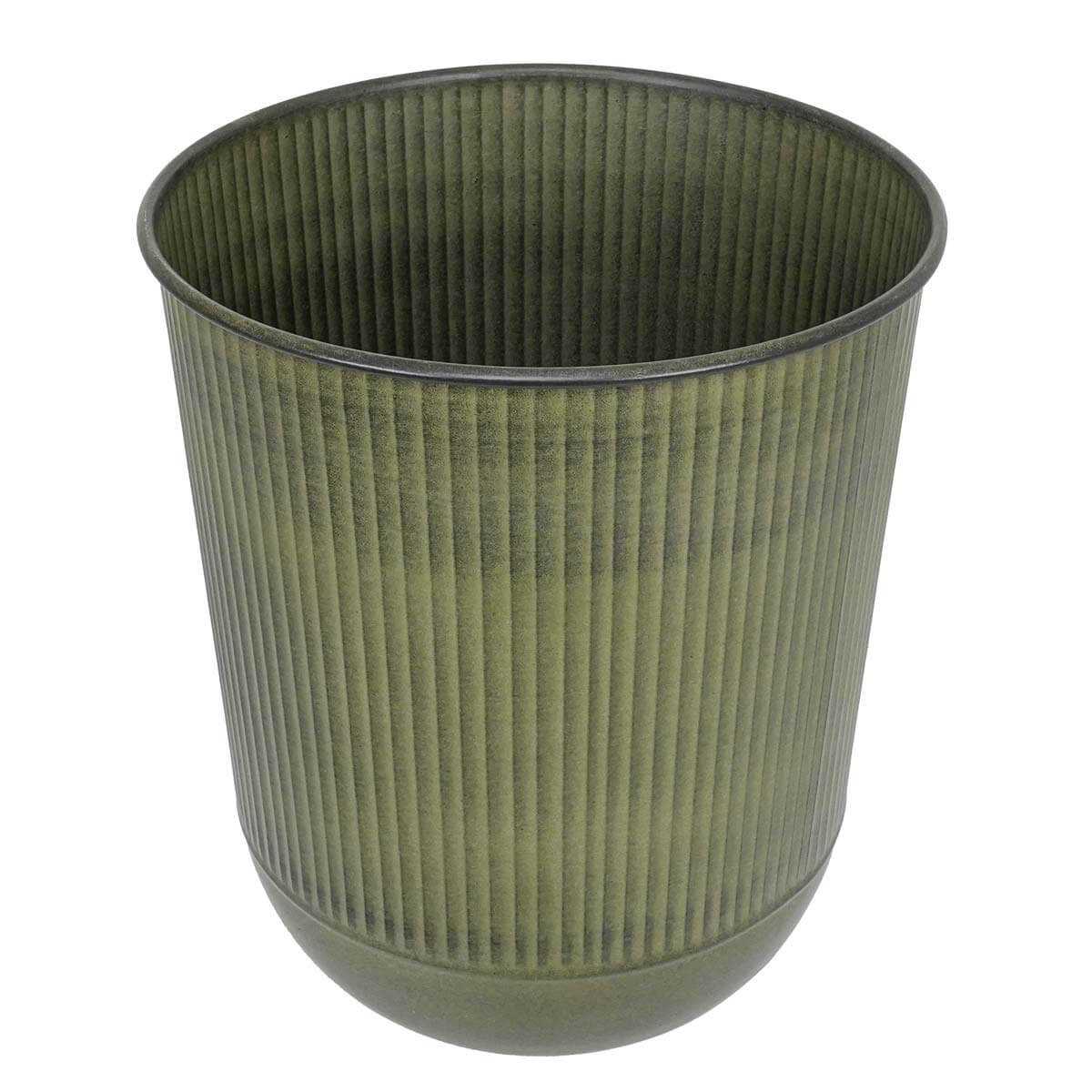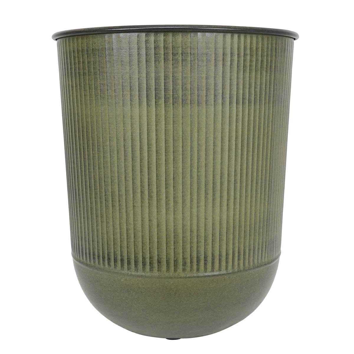 Vaso Elegante in Metallo Verde Effetto Pietra con Foro di Scolo e Piedini Antigraffio - D.40xH.50 cm
