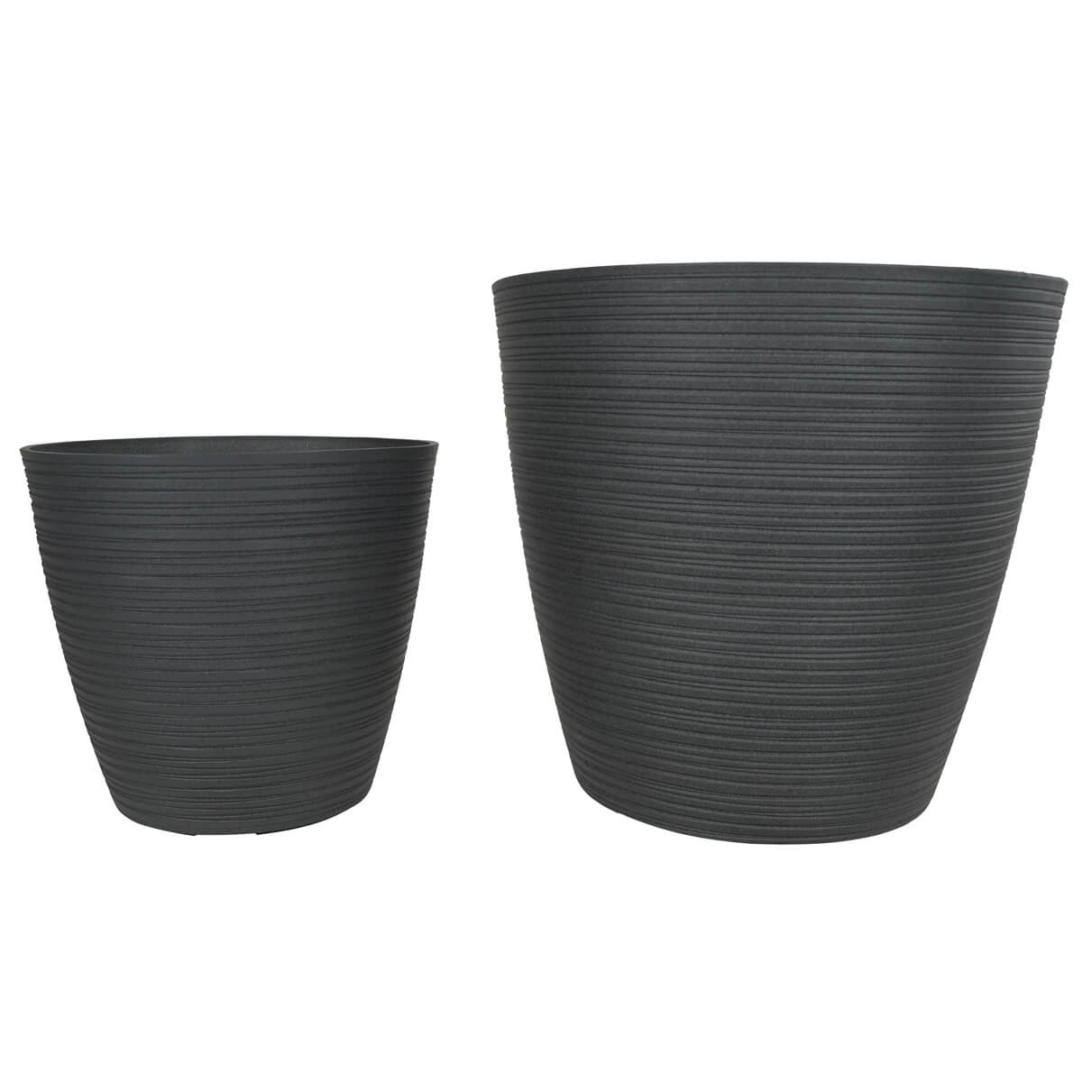 Set da 2 Vasi Grigio in Poliresina e Polvere di Pietra, Uso Interno ed Esterno con Foro di Drenaggio