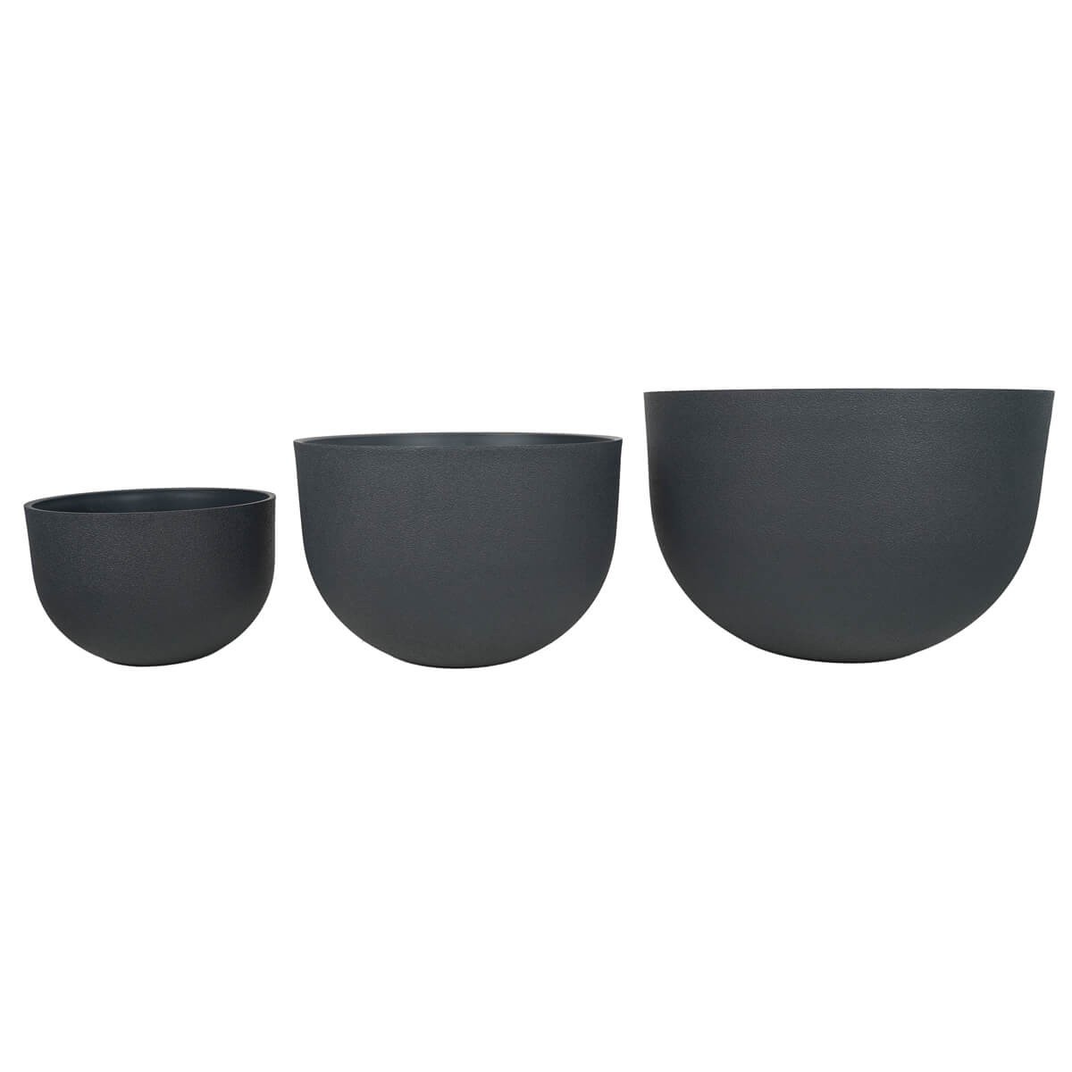 Set da 3 Vasi Ciotola in Poliresina Nero, Eleganza per Interno ed Esterno