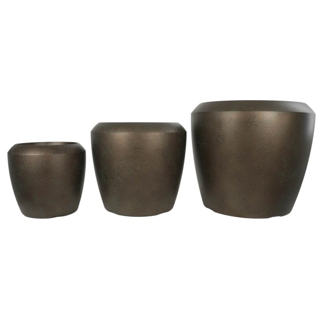 Set da 3 Vasi in Poliresina Alta Densità Color Metallo Uso Interno/Esterno