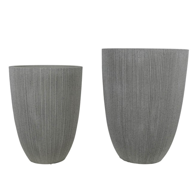 Set da 2 Vasi in HDPE Beige con Finitura a Righe, Eleganza per Interni ed Esterni