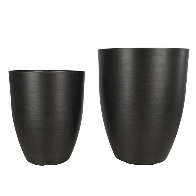 Set da 2 Vasi Grigio Metallizzato in Poliresina e Polvere di Pietra, per Interni ed Esterni