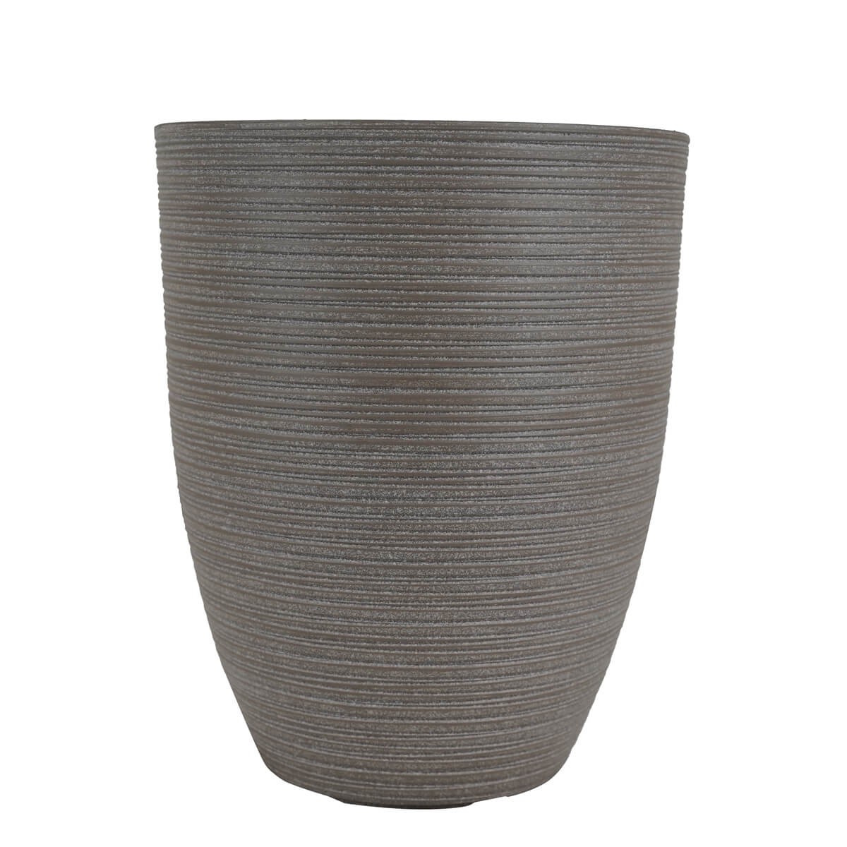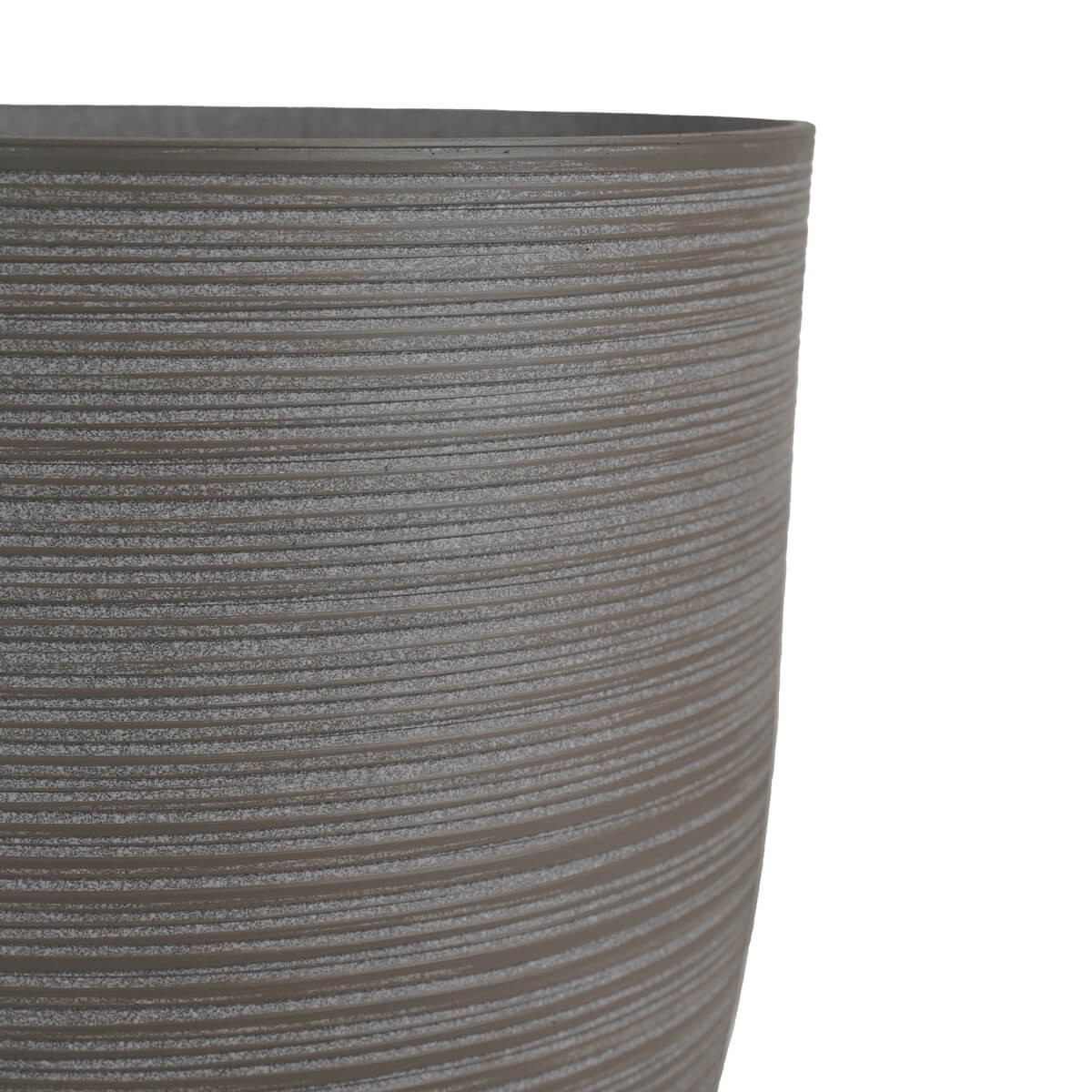Il design arrotondato e la superficie rigata donano un tocco naturale e contemporaneo a qualsiasi ambiente. Grazie al foro di drenaggio con tappino, è perfetto per ospitare piante e fiori, garantendo la corretta gestione dell’acqua e prevenendo i ristagni.