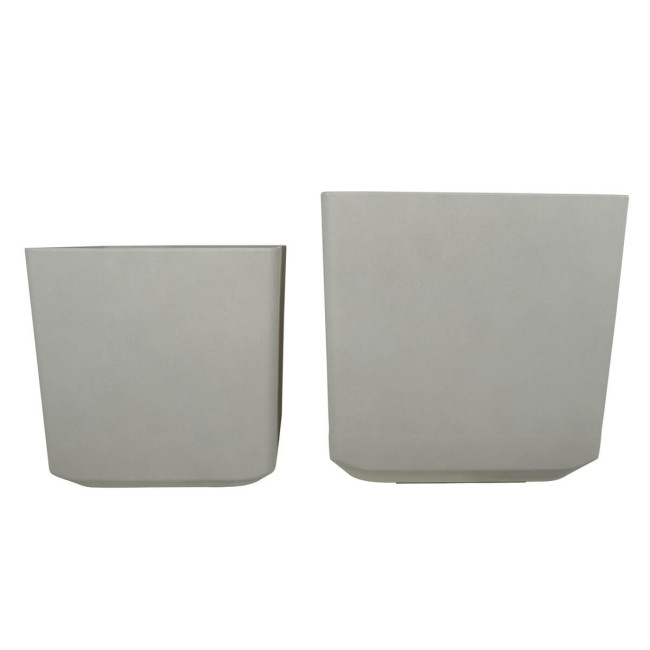 Set da 2 Vasi Quadrato Beige in Poliresina Mista a Polvere di Pietra, per Interni ed Esterni