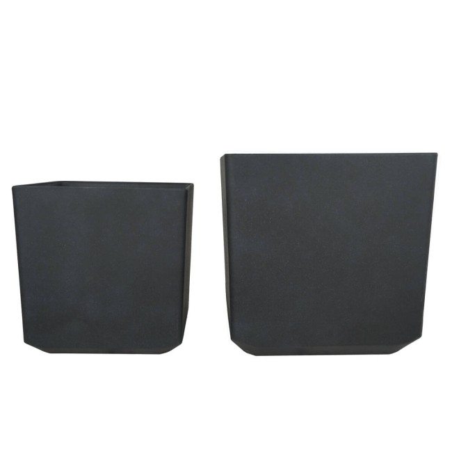 Set da 2 Vasi Quadrato Nero in Poliresina ad Alta Densità Mista a Polvere di Pietra, per Interni ed Esterni
