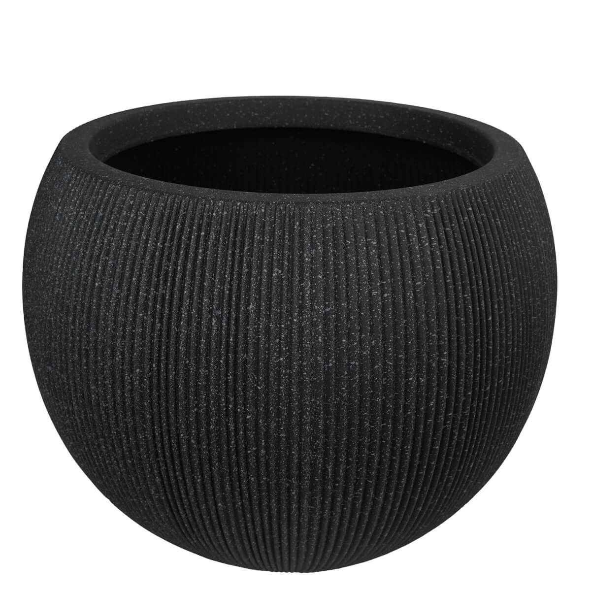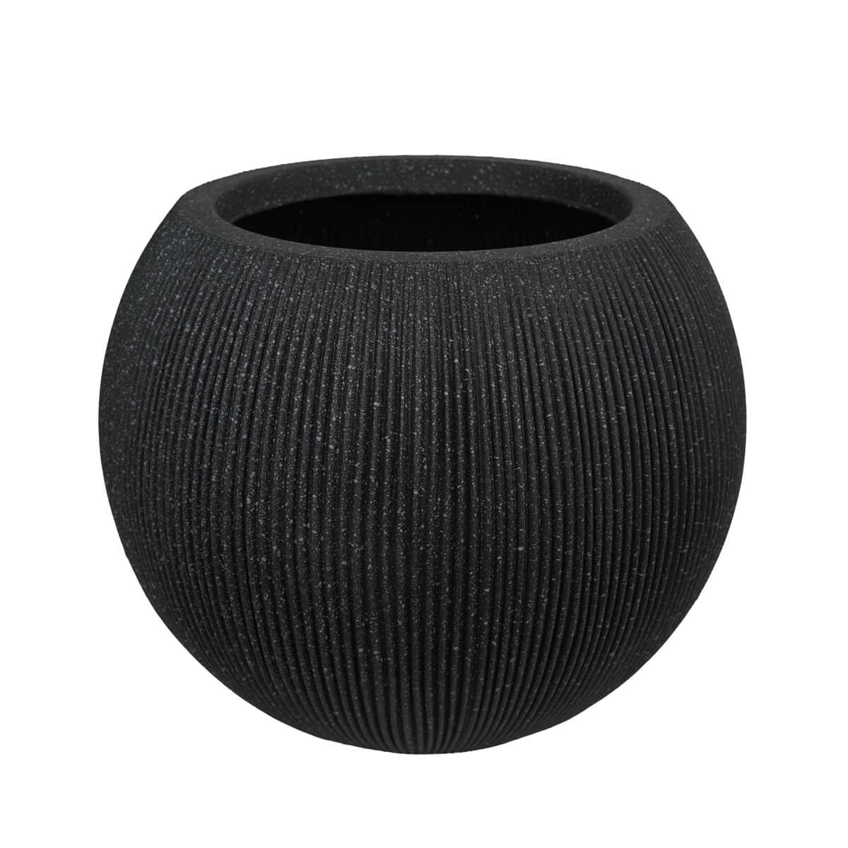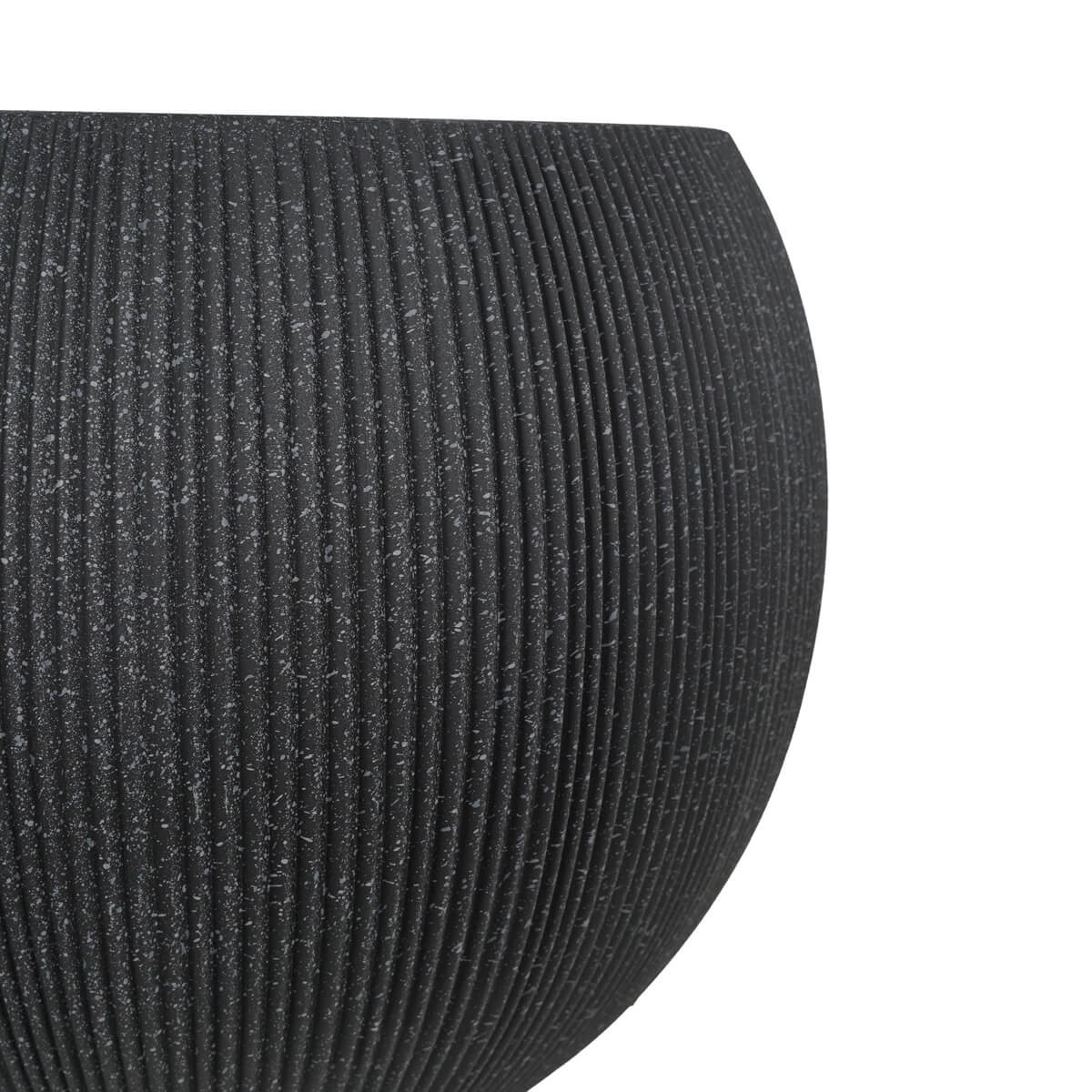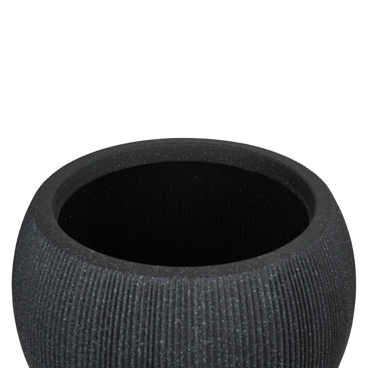 Vaso Sferico Nero in HDPE Stilé | Design Moderno con Finitura Rigata | Drenaggio e Resistenza per Interno ed Esterno | Set da 2