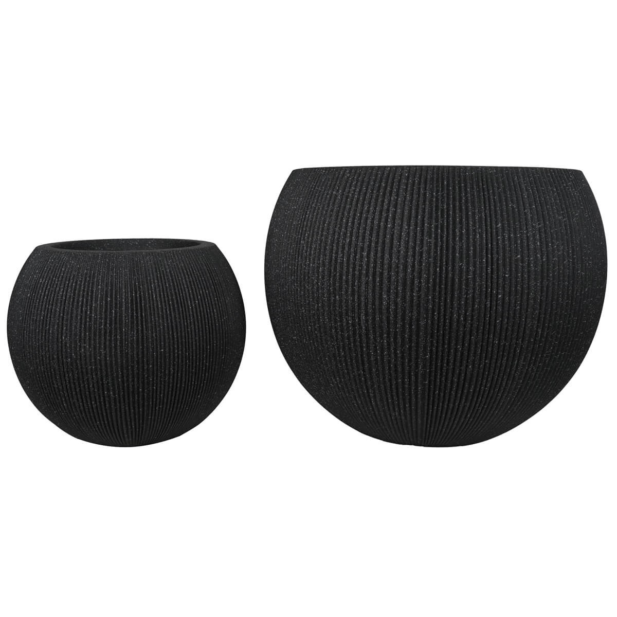Set da 2 Vasi Sferico Nero in HDPE, per Uso Interno ed Esterno