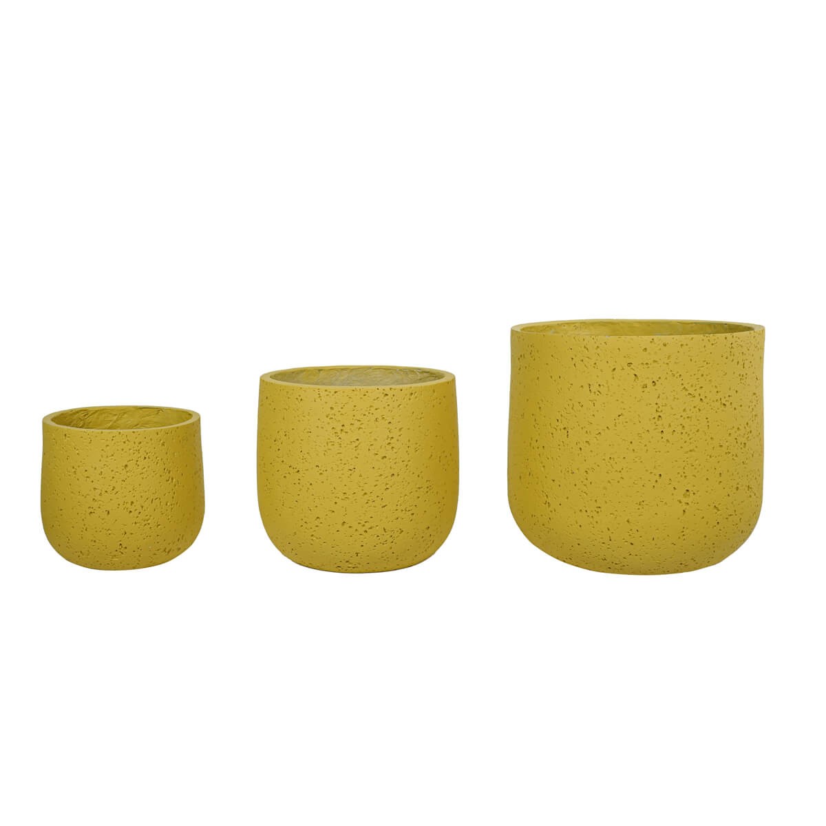 Set Tre Vasi in Ossido di Magnesio Colore Senape, per Interno ed Esterno