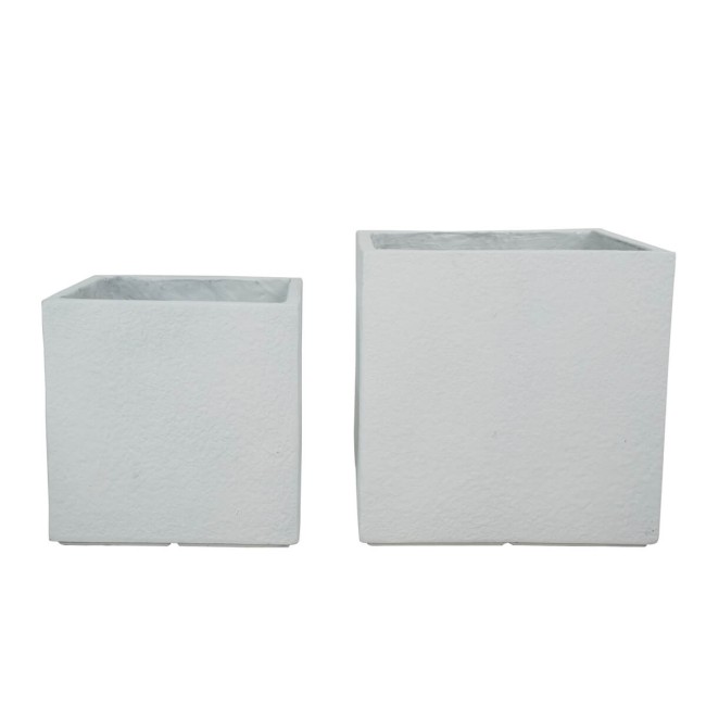 Set Due Vasi Cubo in Ossido di Magnesio Bianco, per Interni ed Esterni