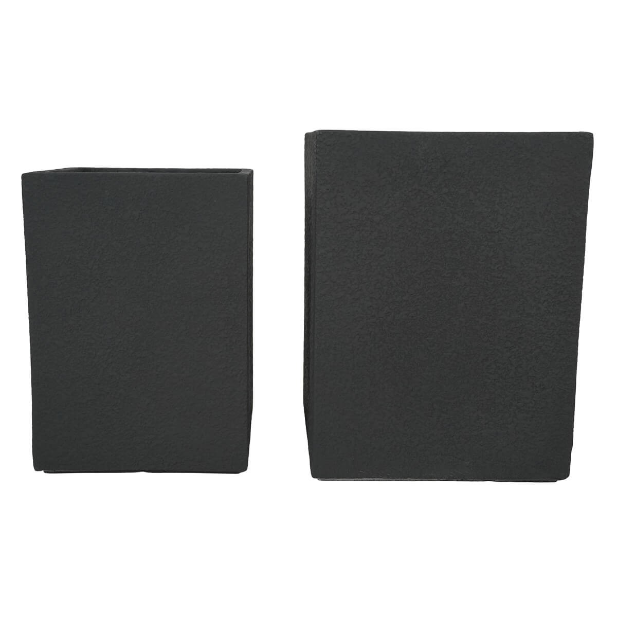 Set Due Vasi Rettangolari Nero in Ossido di Magnesio, per Interni ed Esterni,