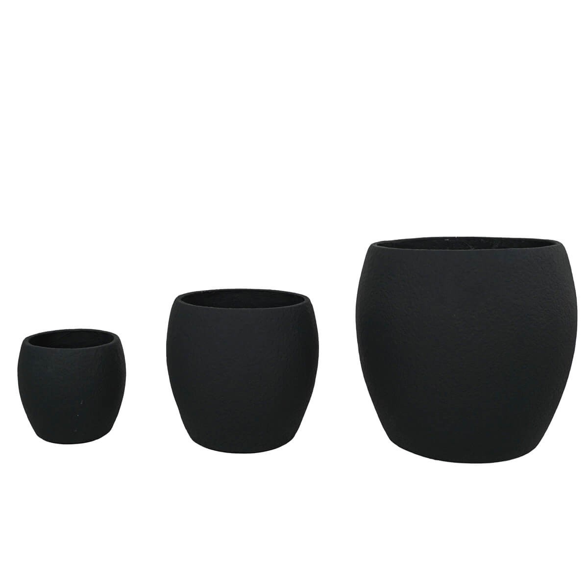 Set Tre Vasi Sferici Nero in Ossido di Magnesio, per Interni ed Esterni