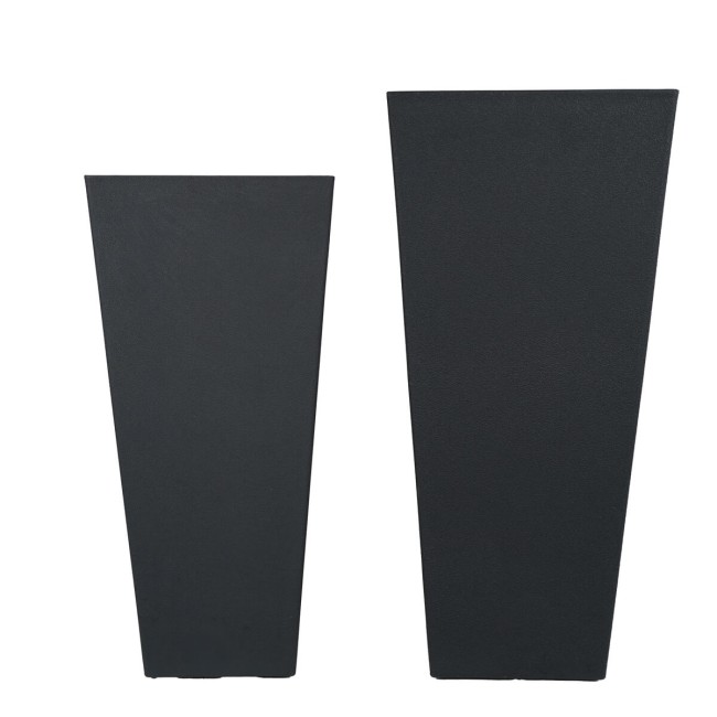 Il set include due dimensioni complementari, ideali per creare composizioni bilanciate e di grande impatto visivo. Il foro di drenaggio con tappino assicura una corretta gestione dell’acqua, prevenendo ristagni e favorendo il benessere delle radici, rendendo i vasi adatti sia all’uso indoor che outdoor.