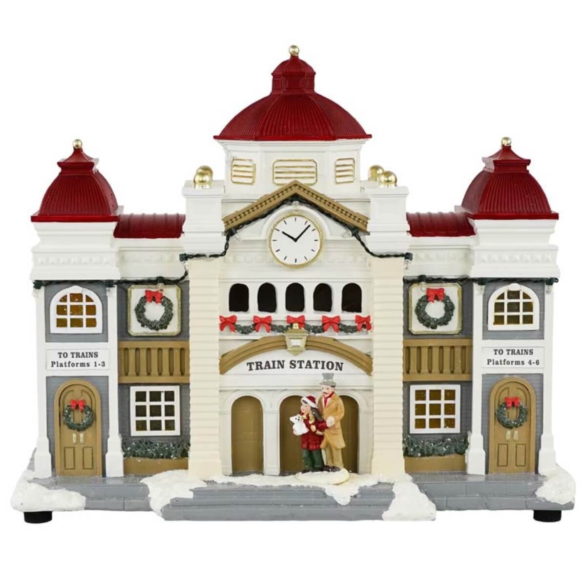 Stazione Ferroviaria Natalizia con Luci in Resina H.27 cm