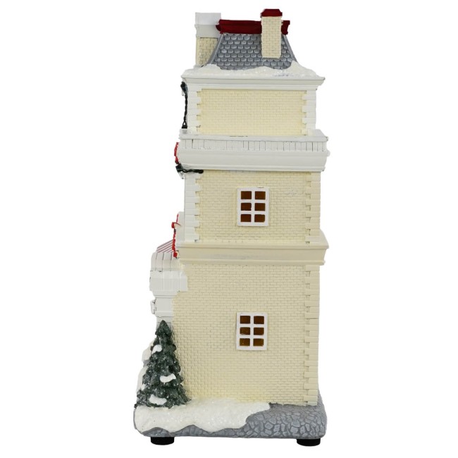 Caffetteria Natalizia Illuminata in Resina con Luci LED – Decorazione Villaggio di Natale a Batterie H.27,5 cm